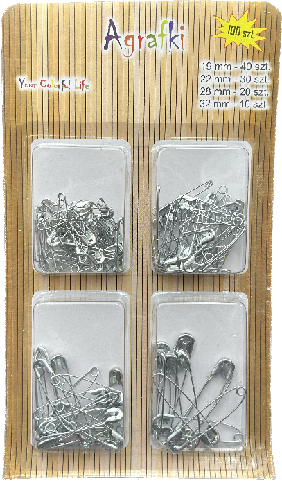 Agrafki srebrne 100szt. mix wielkości