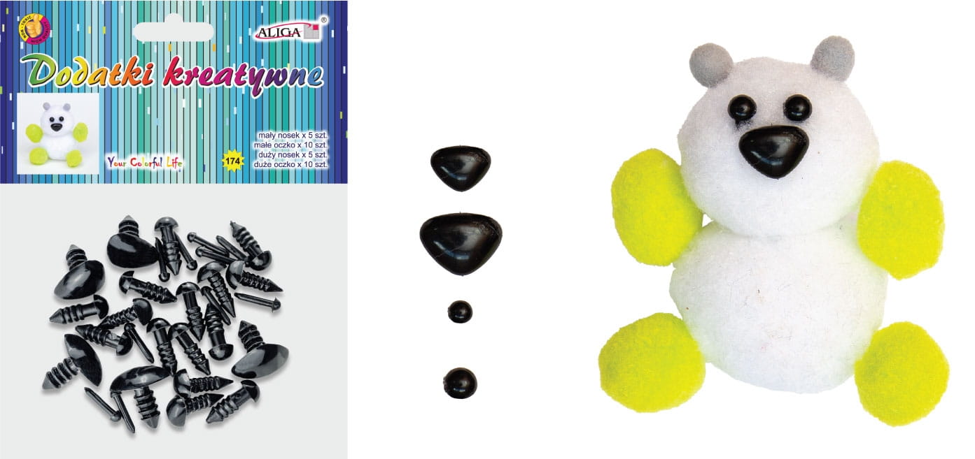 Dodatki kreatywne – plastikowe oczka i noski.
