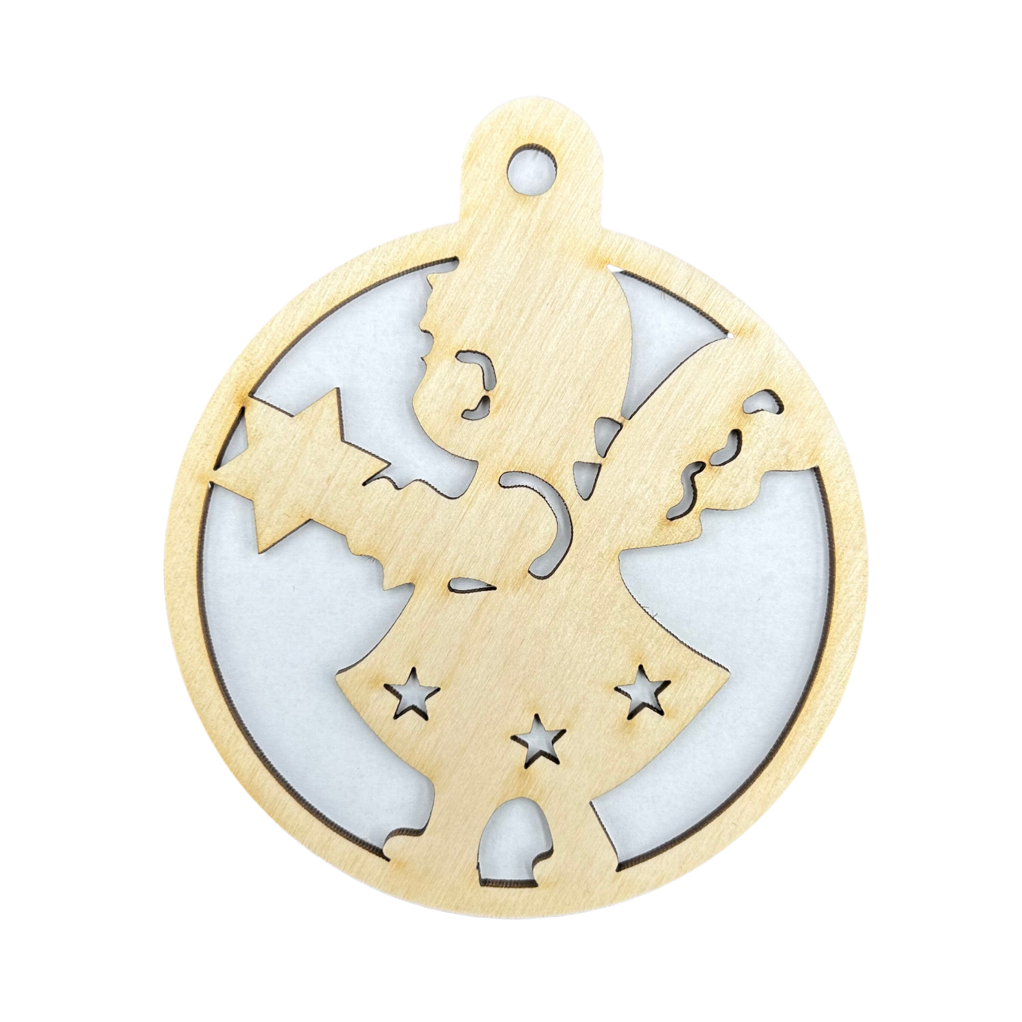 Drewniana bombka świąteczna anioł aniołek ze sklejki zawieszka na choinkę