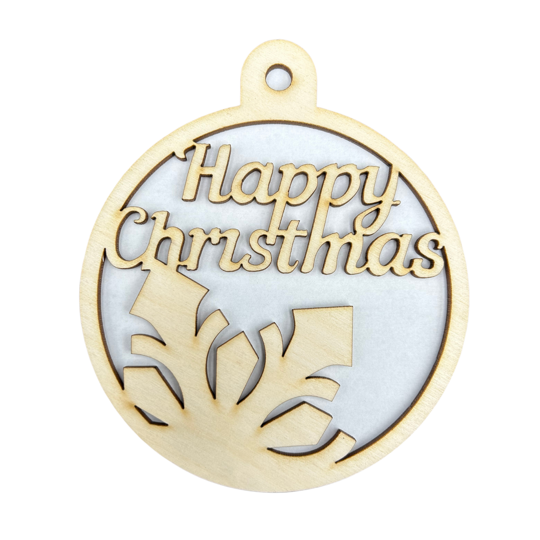 Drewniana bombka świąteczna Happy Christmas ze sklejki zawieszka choinkę