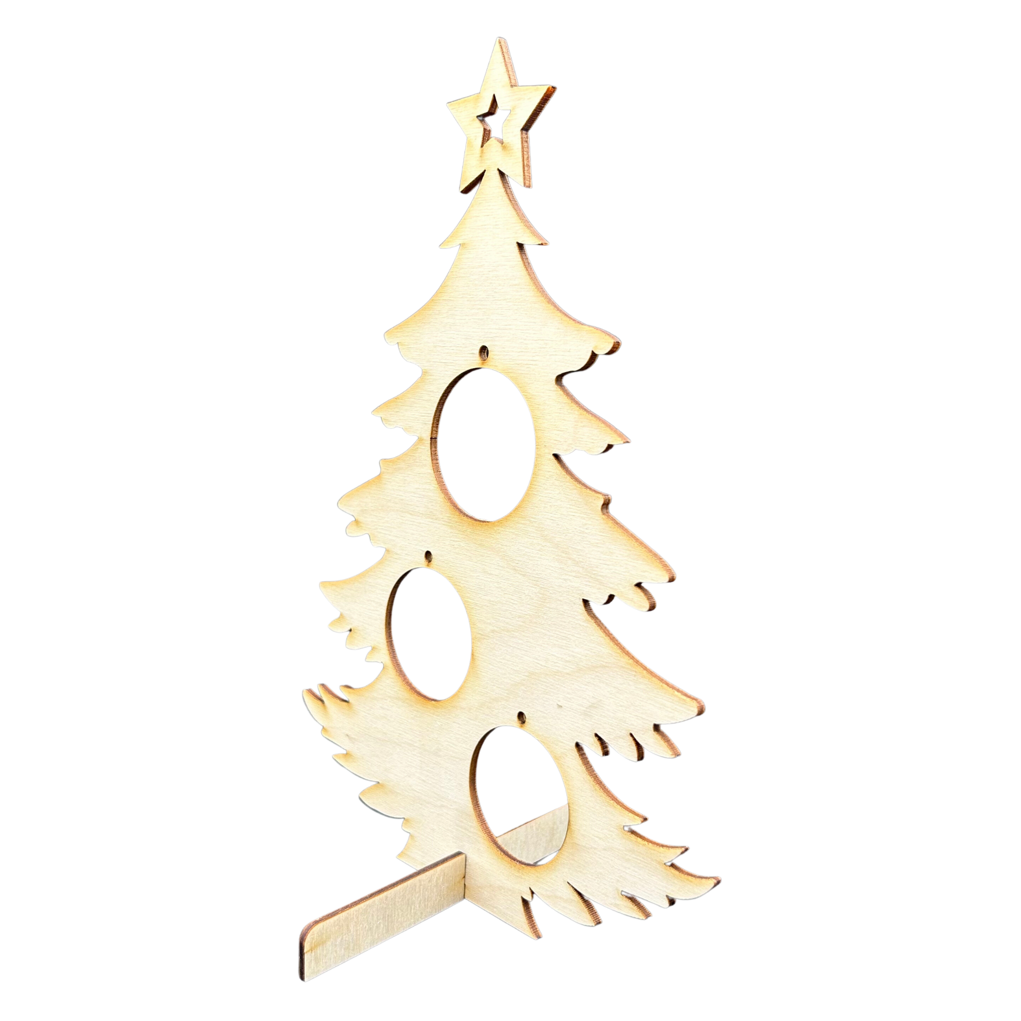 Drewniana choinka na podstawce stojak na bombki bombkę ozdoba stojąca