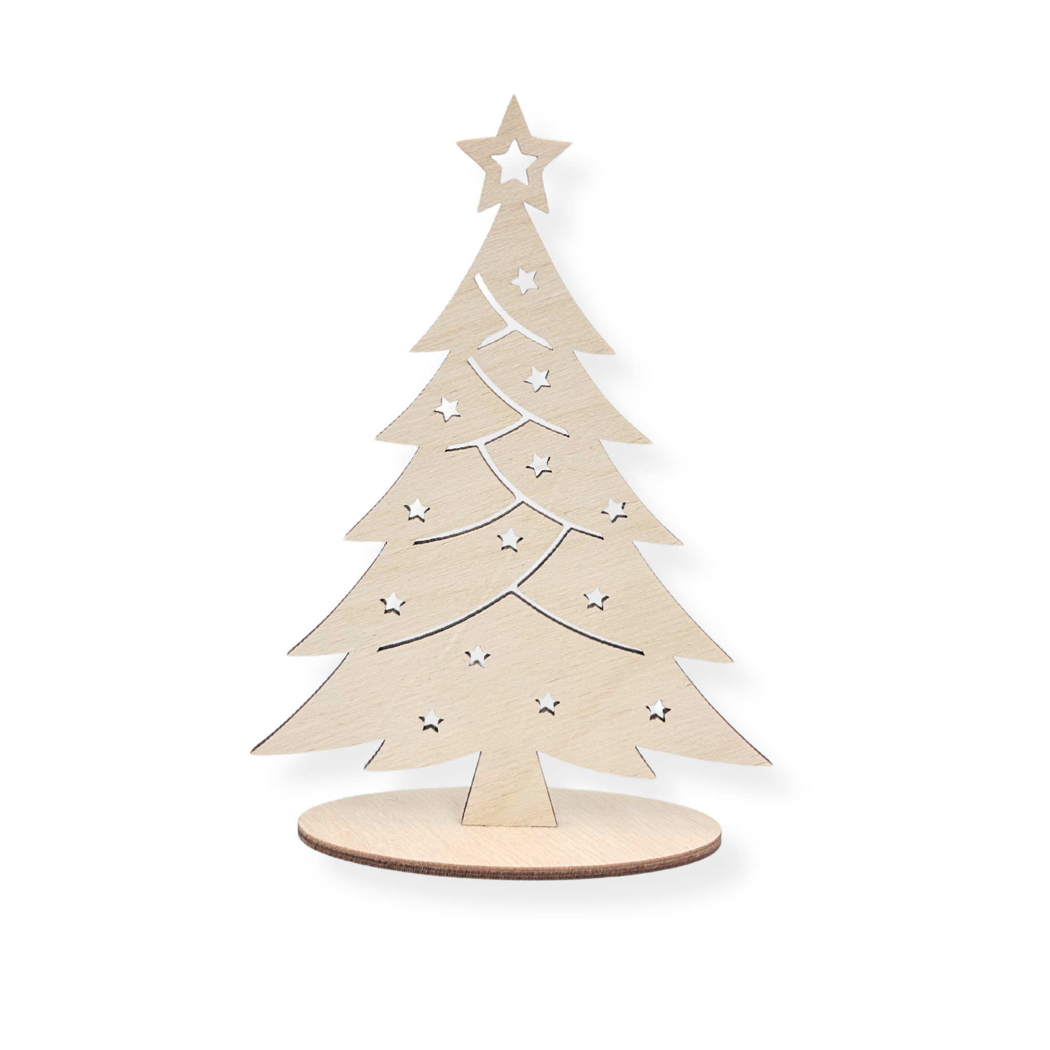 Drewniana CHOINKA Z DEKORACJĄ na podstawce 16CM drzewko dekoracja stojąca dekor