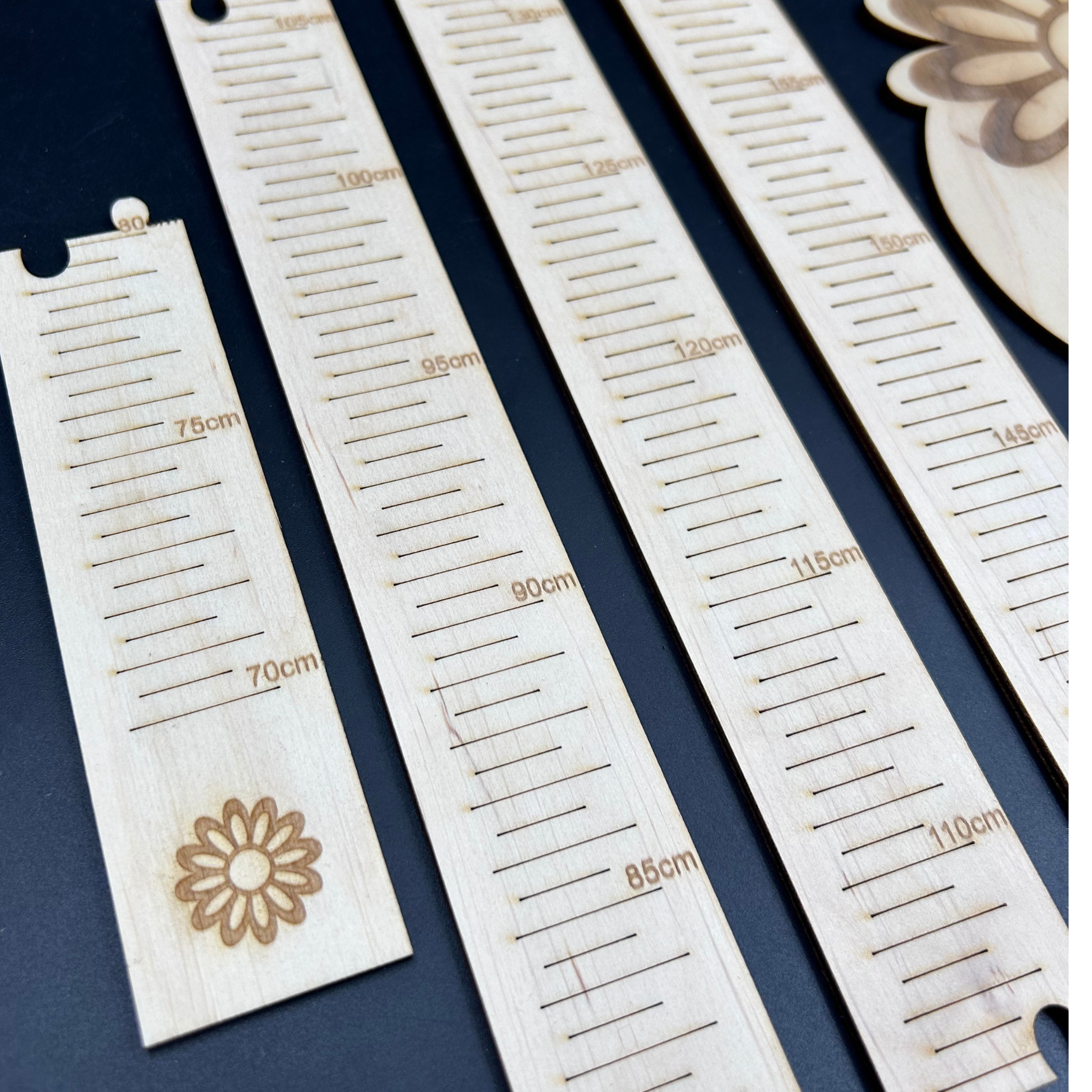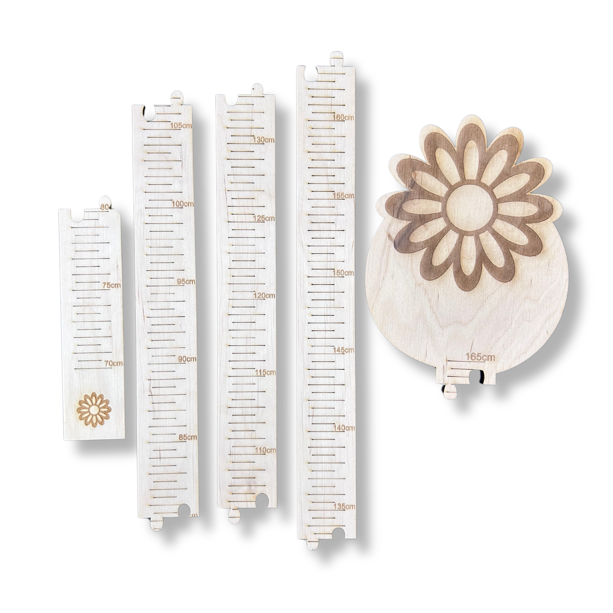 Drewniana miarka wzrostu na ścianę dla dziecka kwiat ze sklejki decoupage