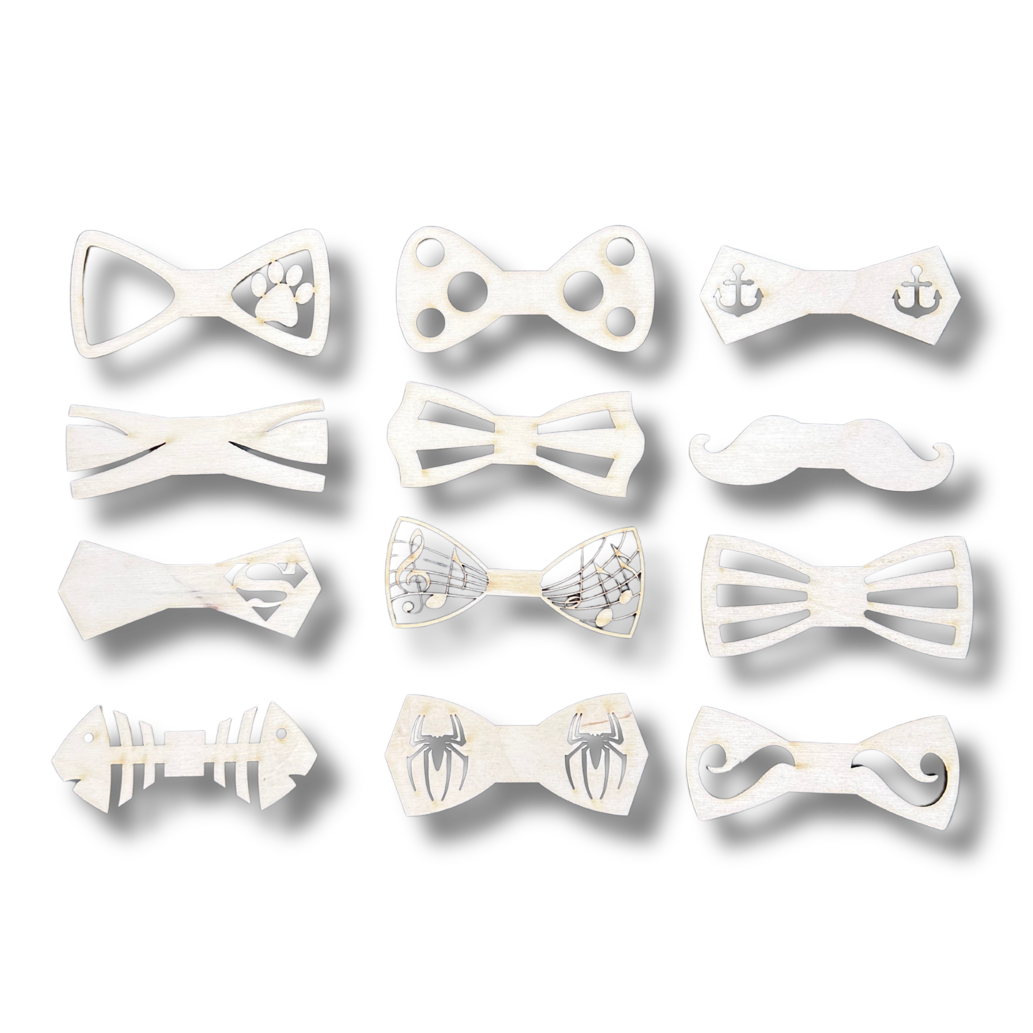 Drewniana mucha muszka zestaw 12szt stylowa elegancka ze sklejki decoupage