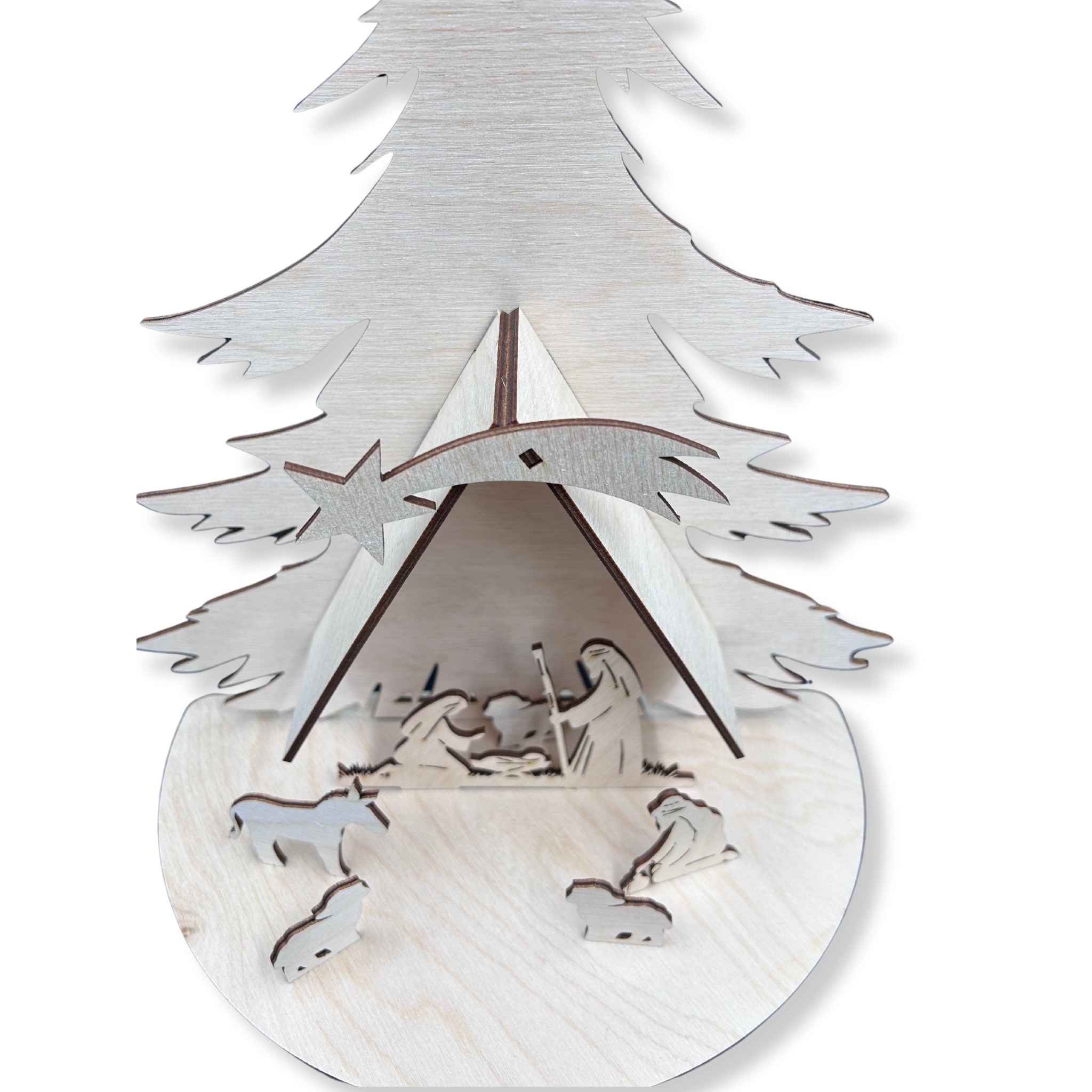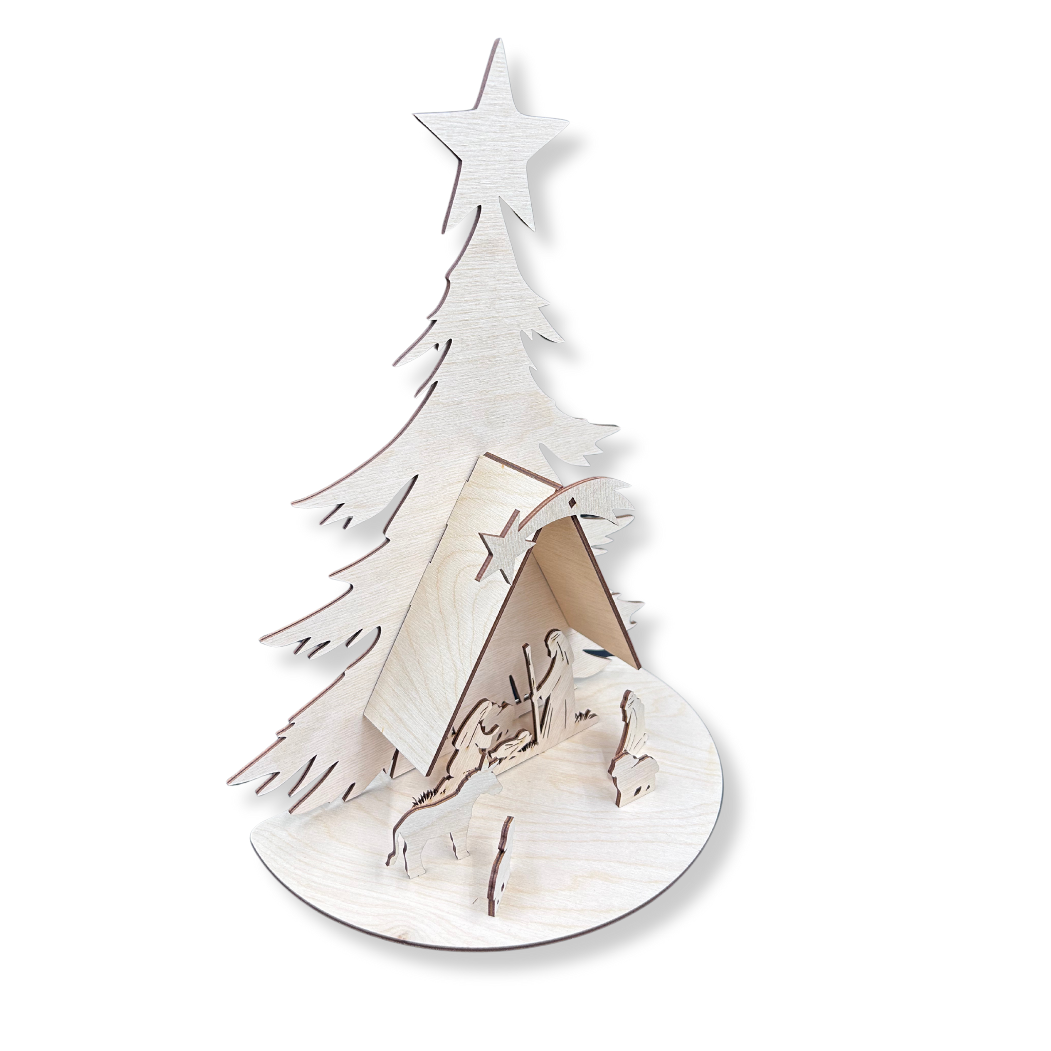 Drewniana ozdoba świąteczna SZOPKA Stajenka Choinka na podstawce stojąca decoupage