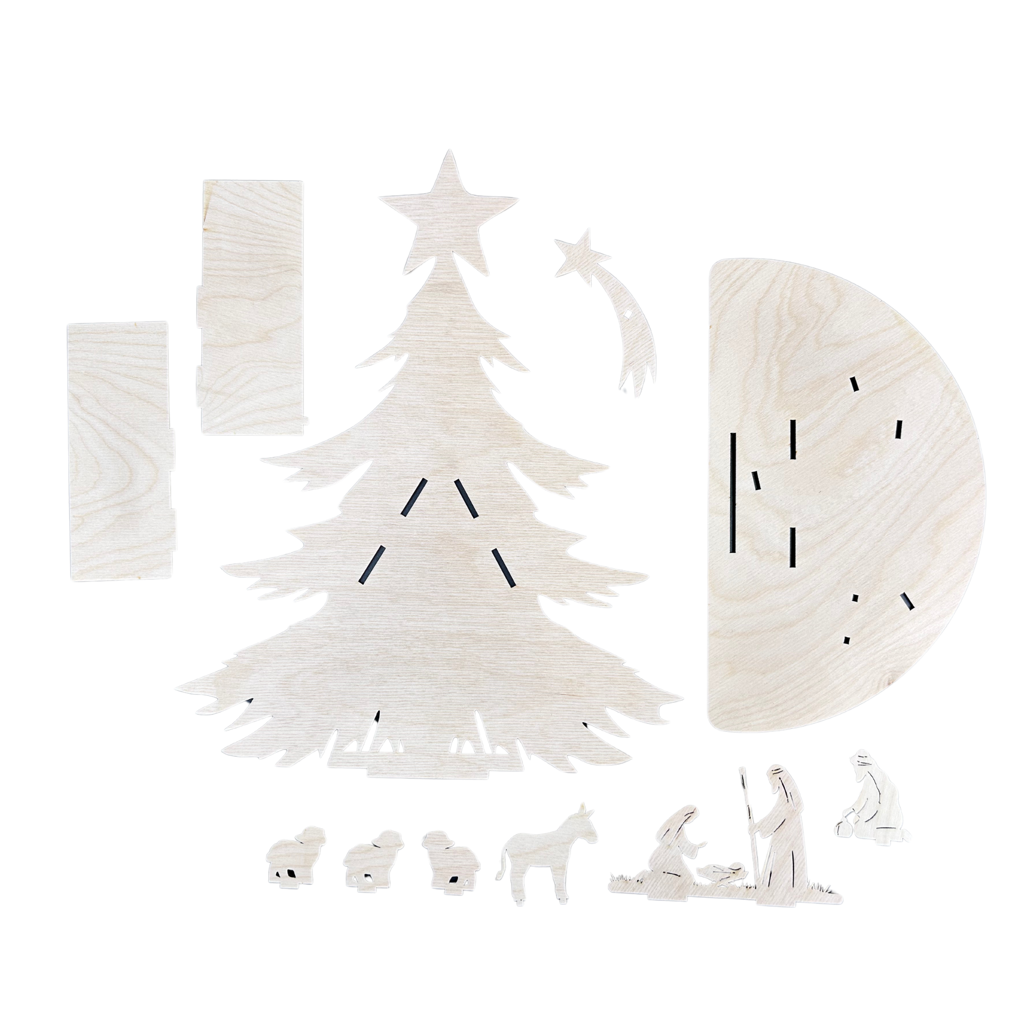 Dekoracja stojąca świąteczna – zestaw: szopka stajenka z choinką