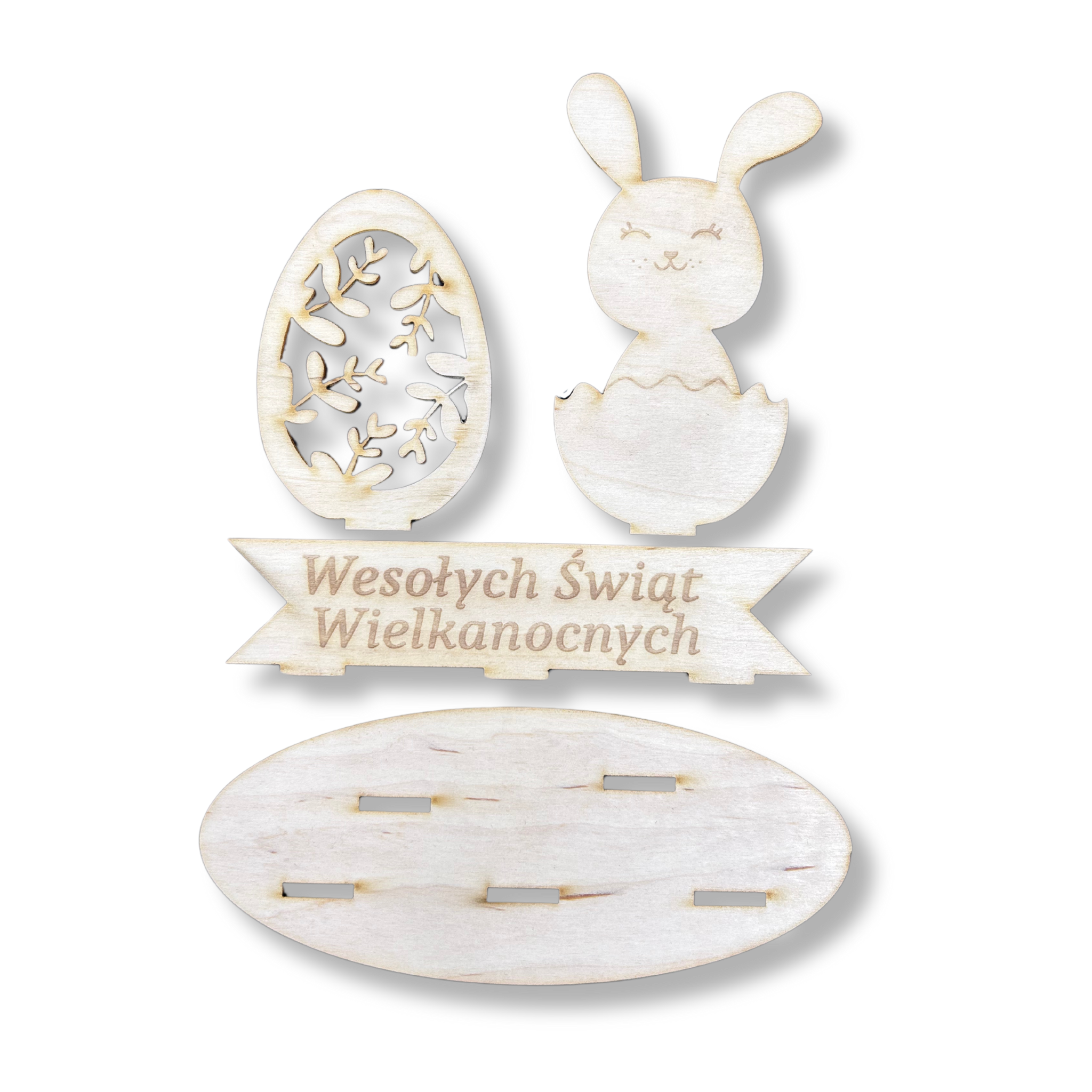 Drewniana ozdoba wielkanocna podstawce stojąca wesołych świąt jajko zając