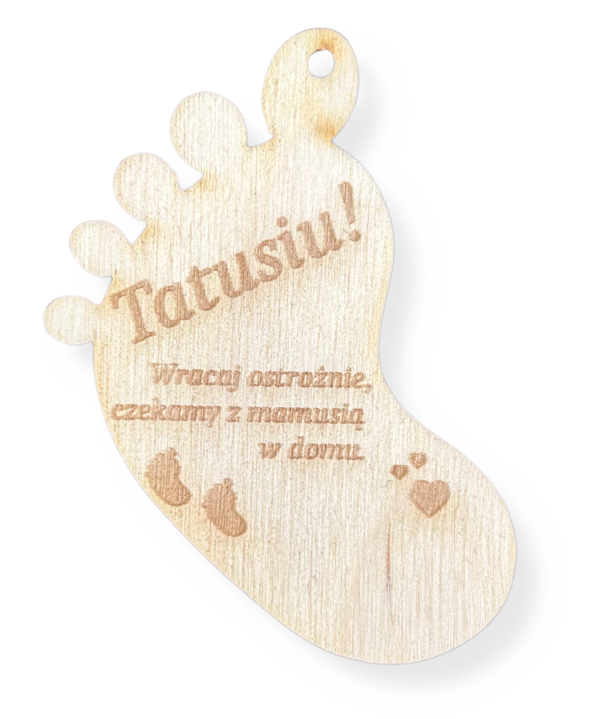 Drewniana zawieszka do samochodu auta stópka stopa grawer wracaj ostrożnie