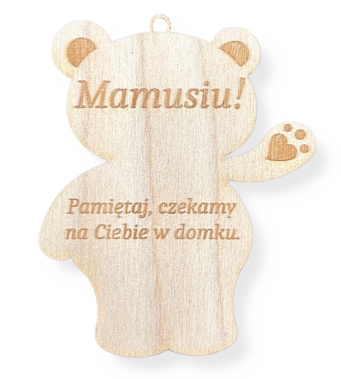 Drewniana zawieszka miś do auta samochodu czekamy prezent dla mamy grawer