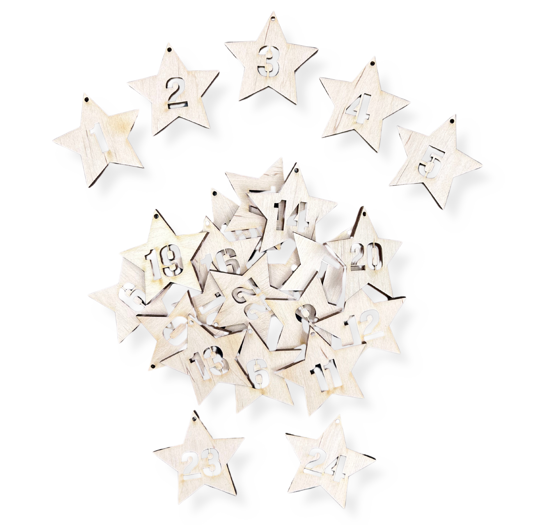 Drewniane cyferki do kalendarza adwentowego ze sklejki gwiazdki decoupage
