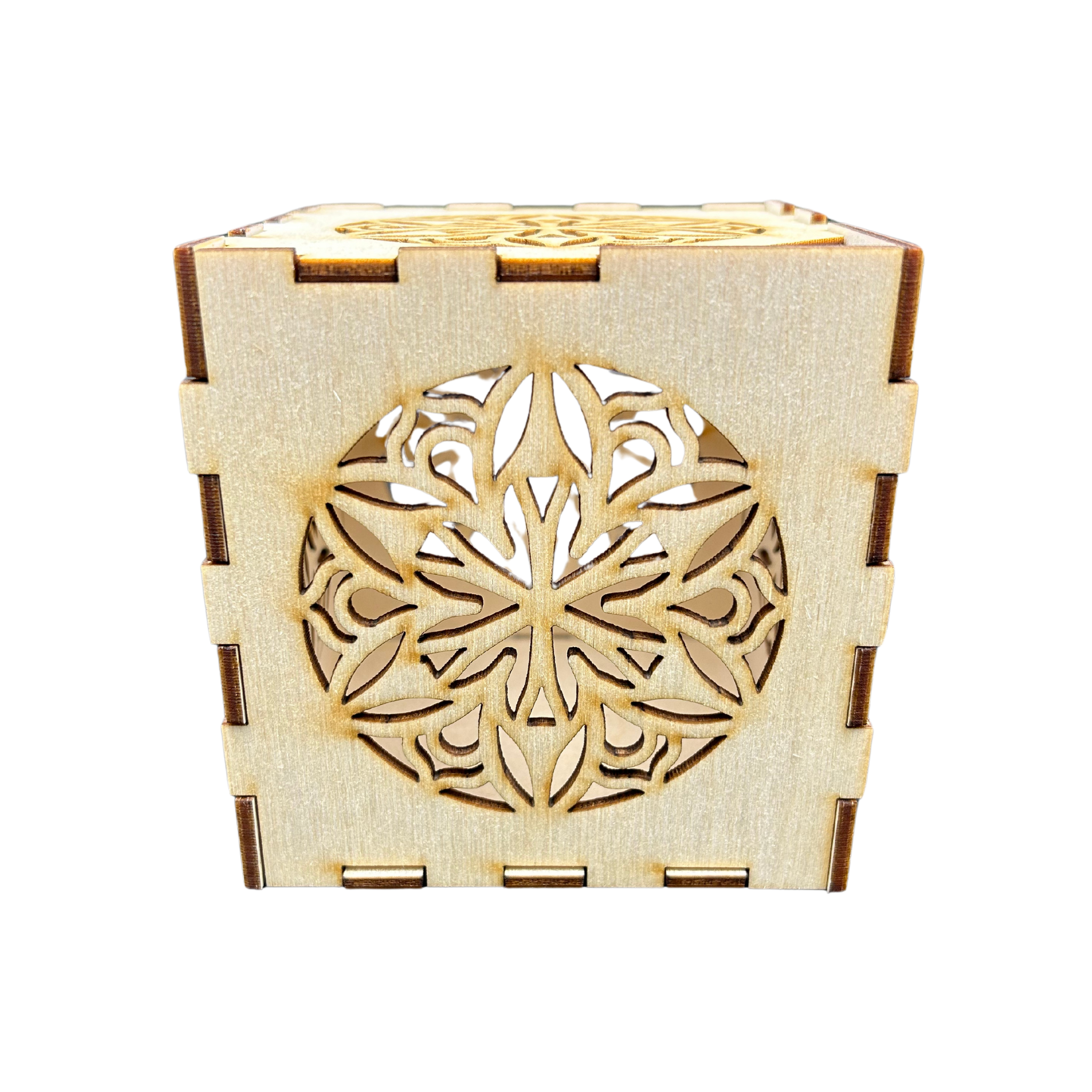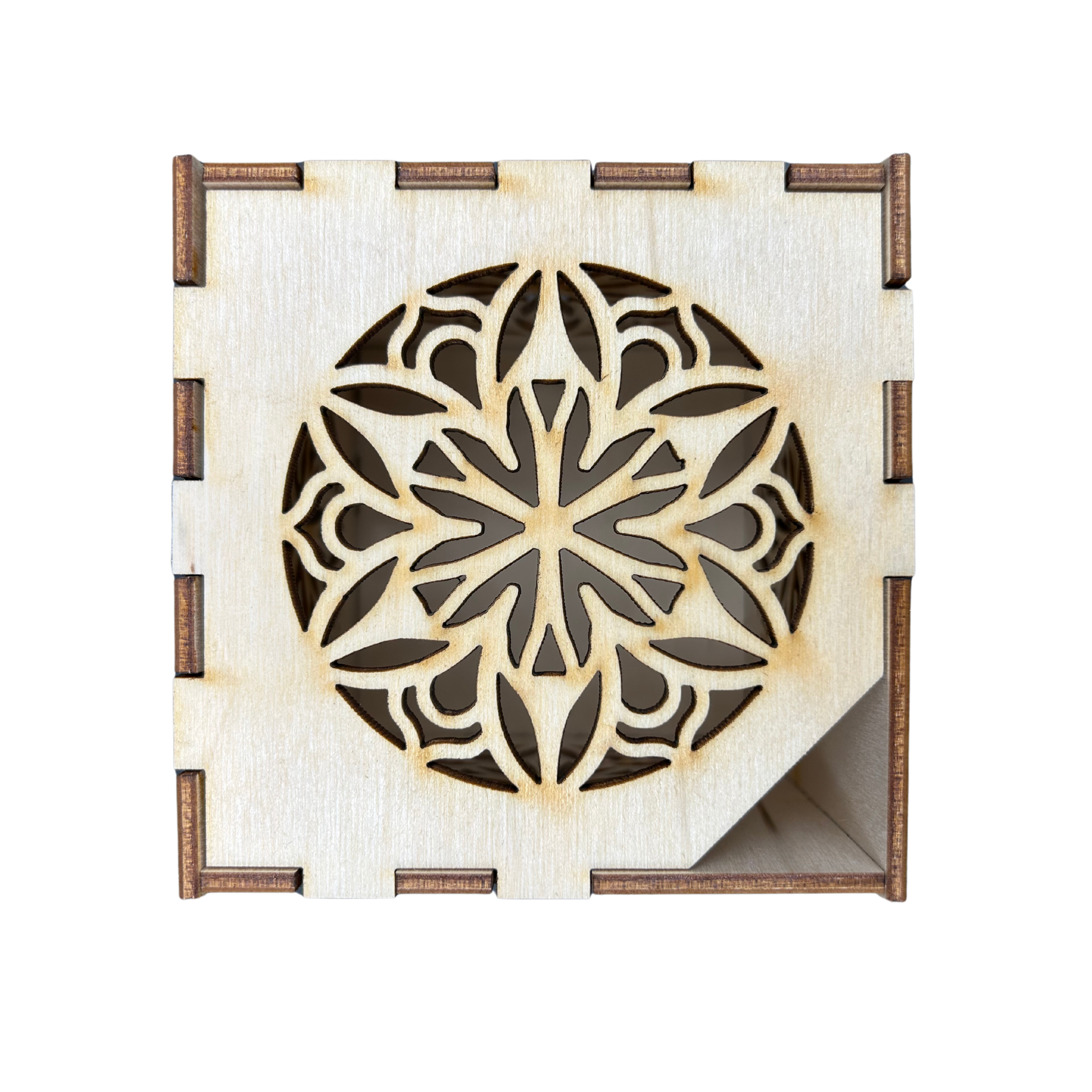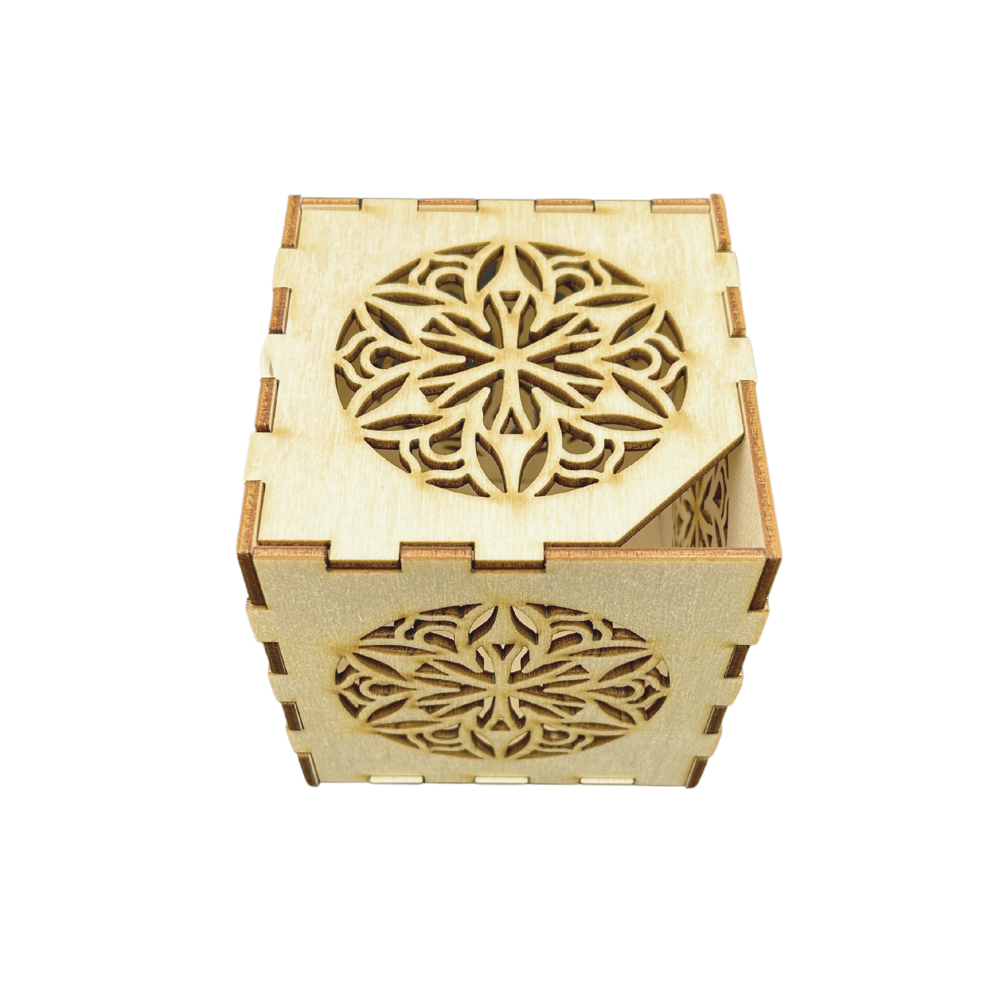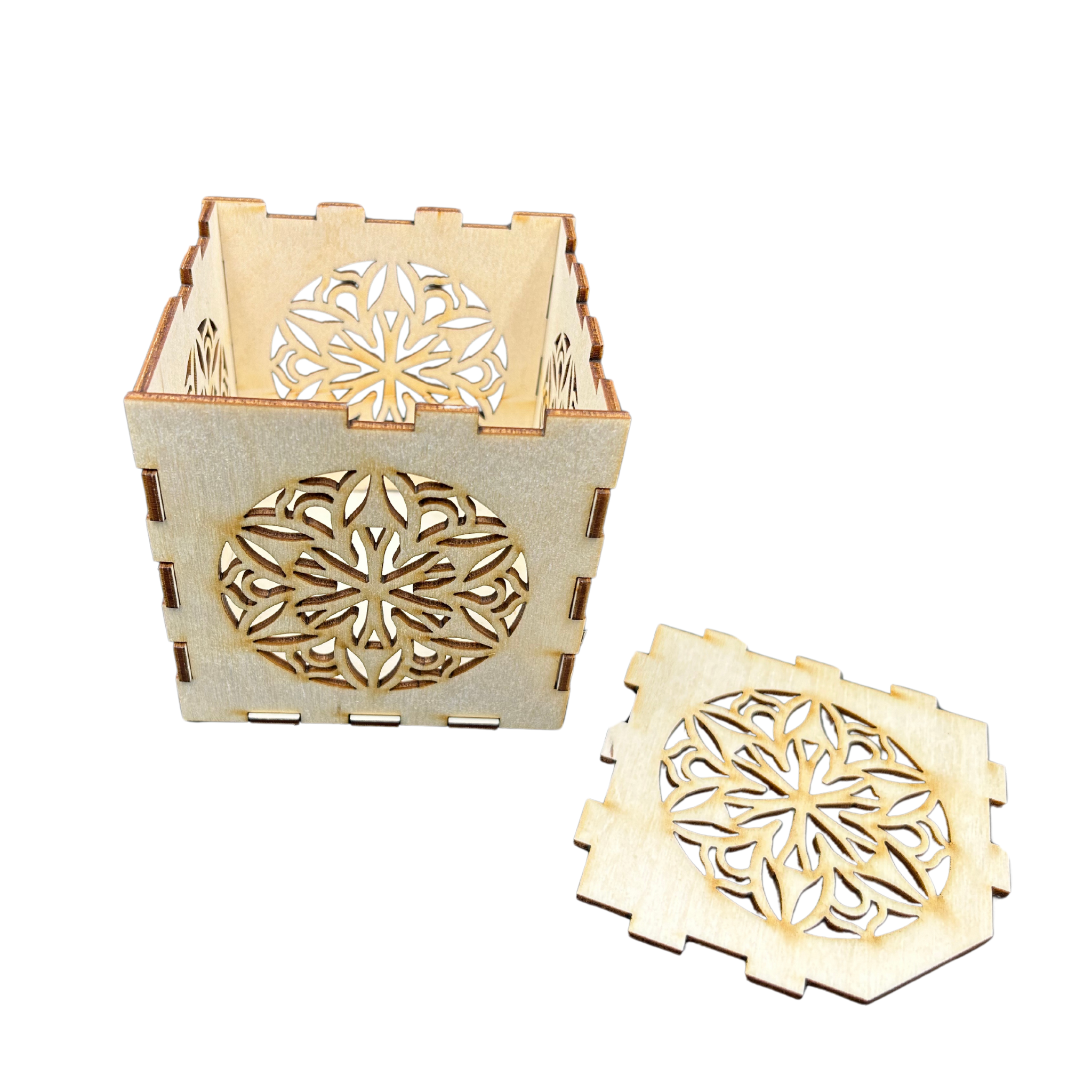 Drewniane pudełko ażurowe szkatułka ze sklejki zamykane decoupage 10×10