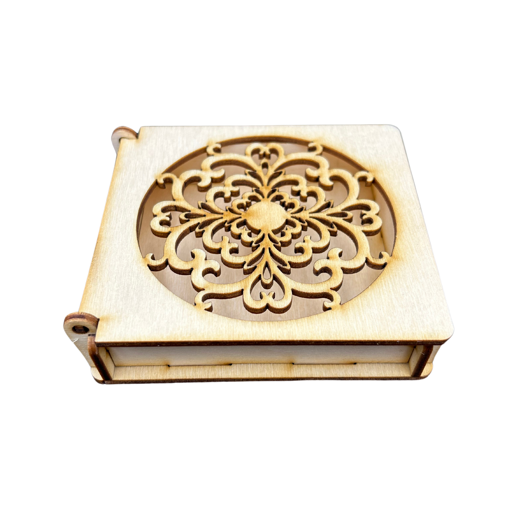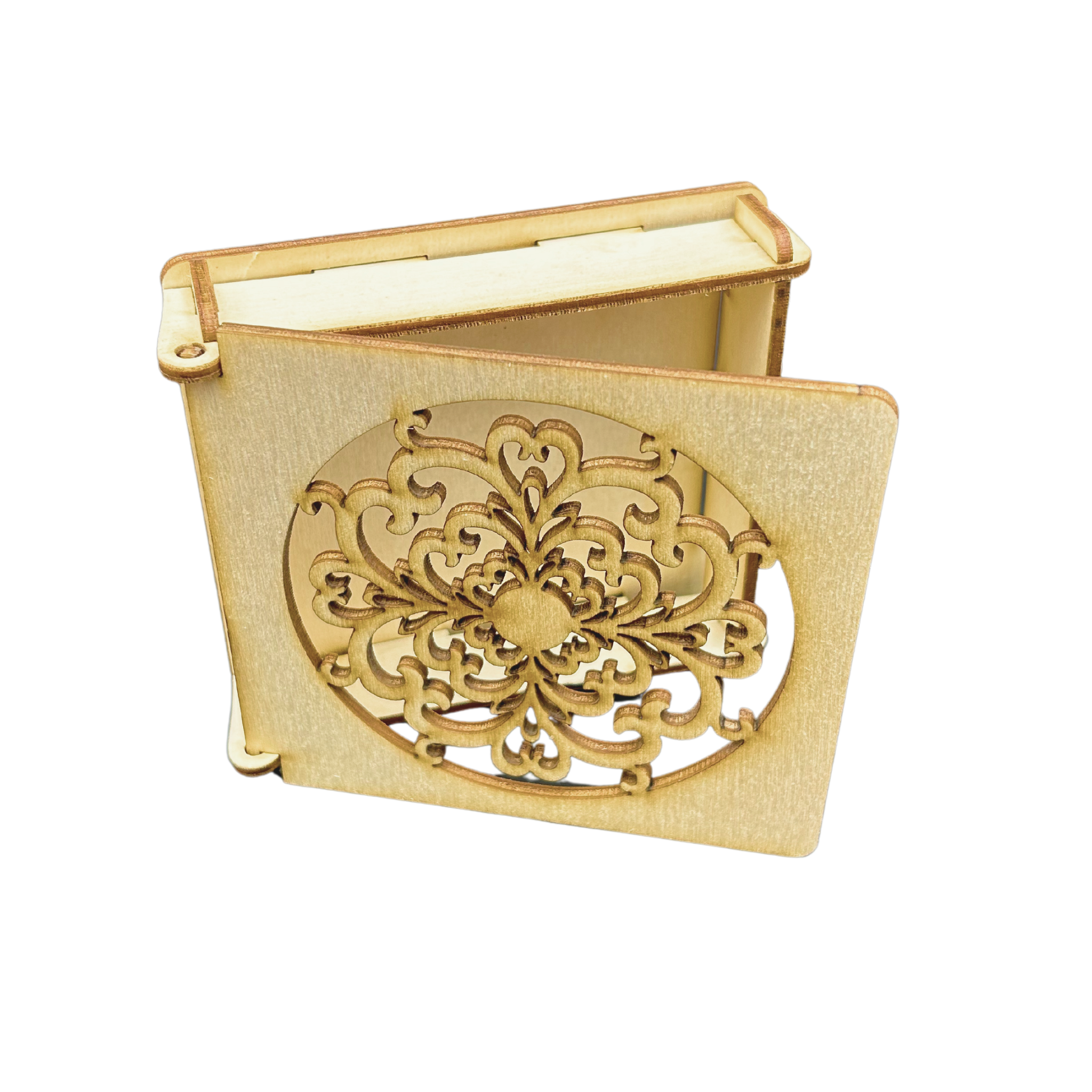 Drewniane pudełko ażurowe szkatułka ze sklejki zamykane decoupage prezent