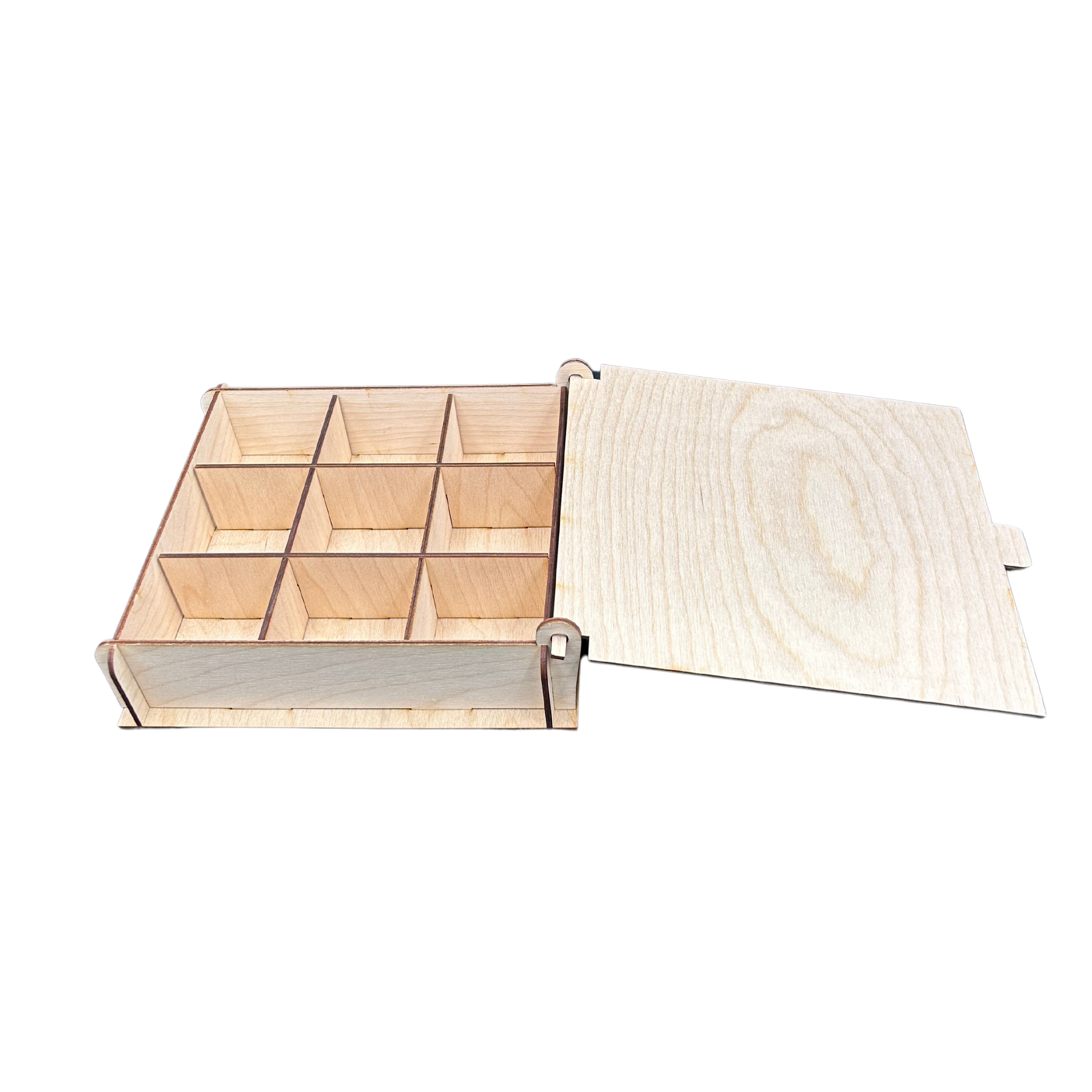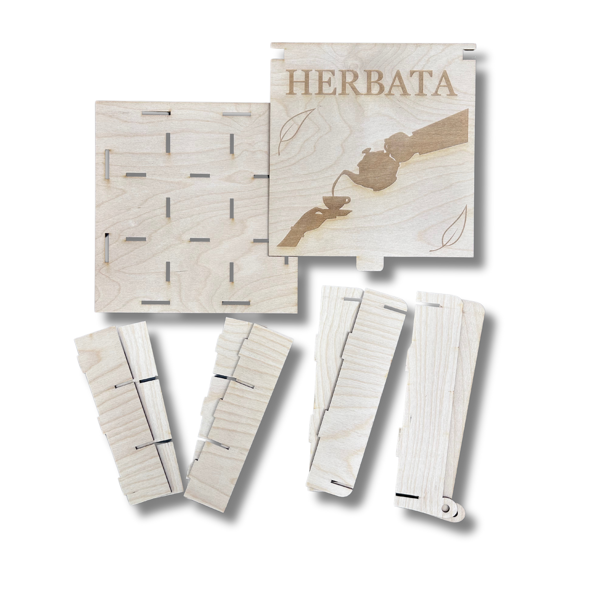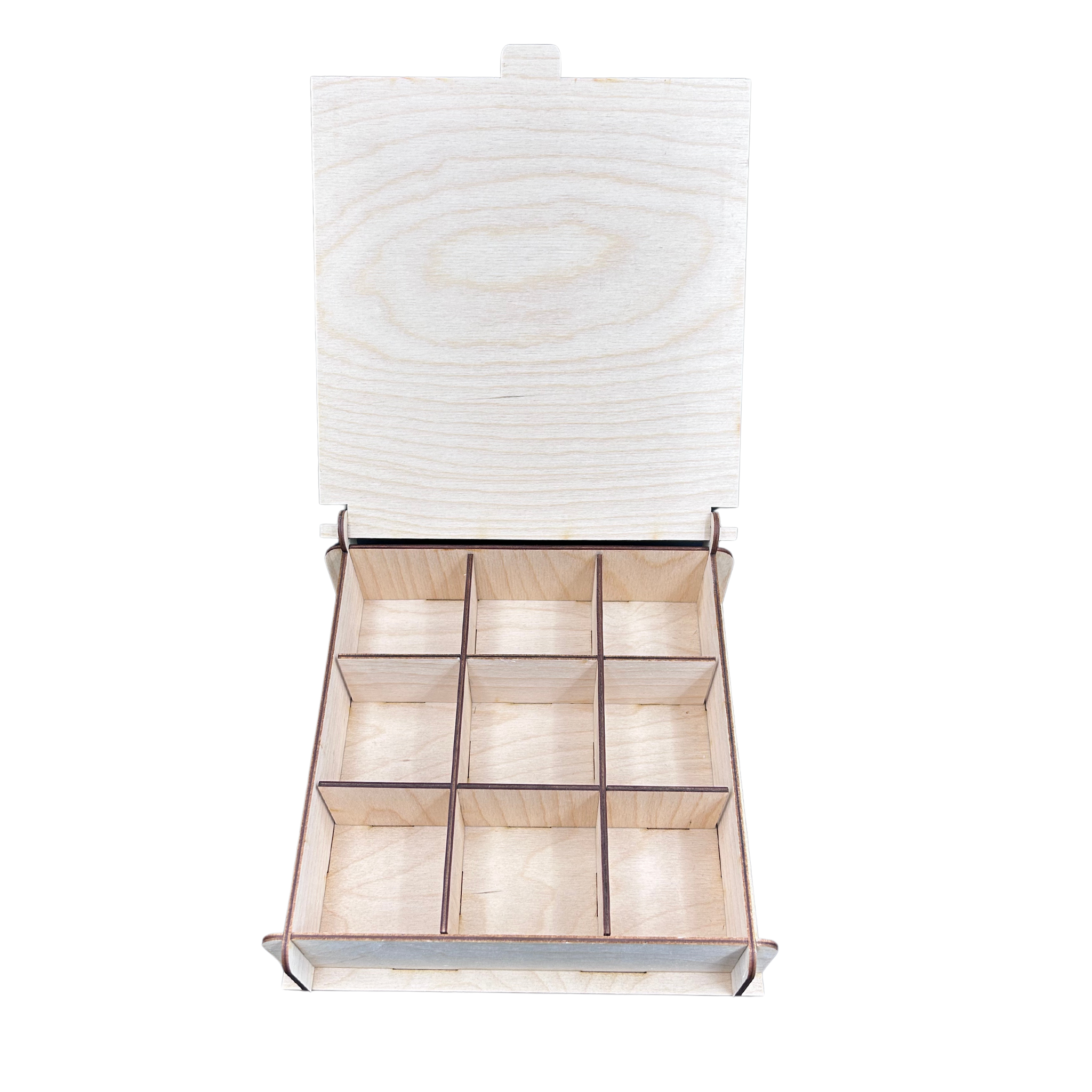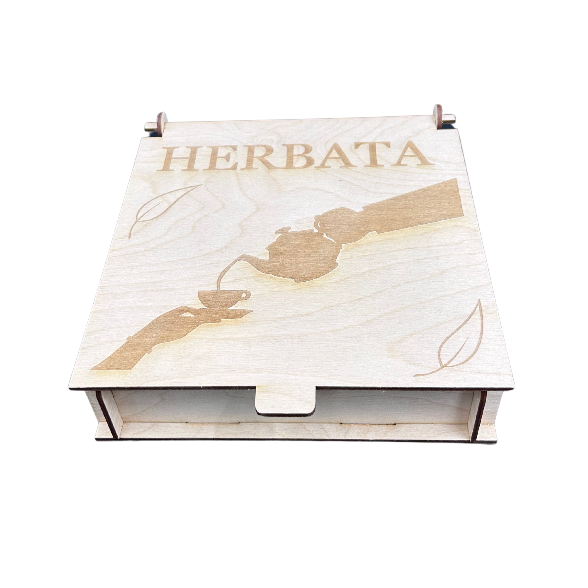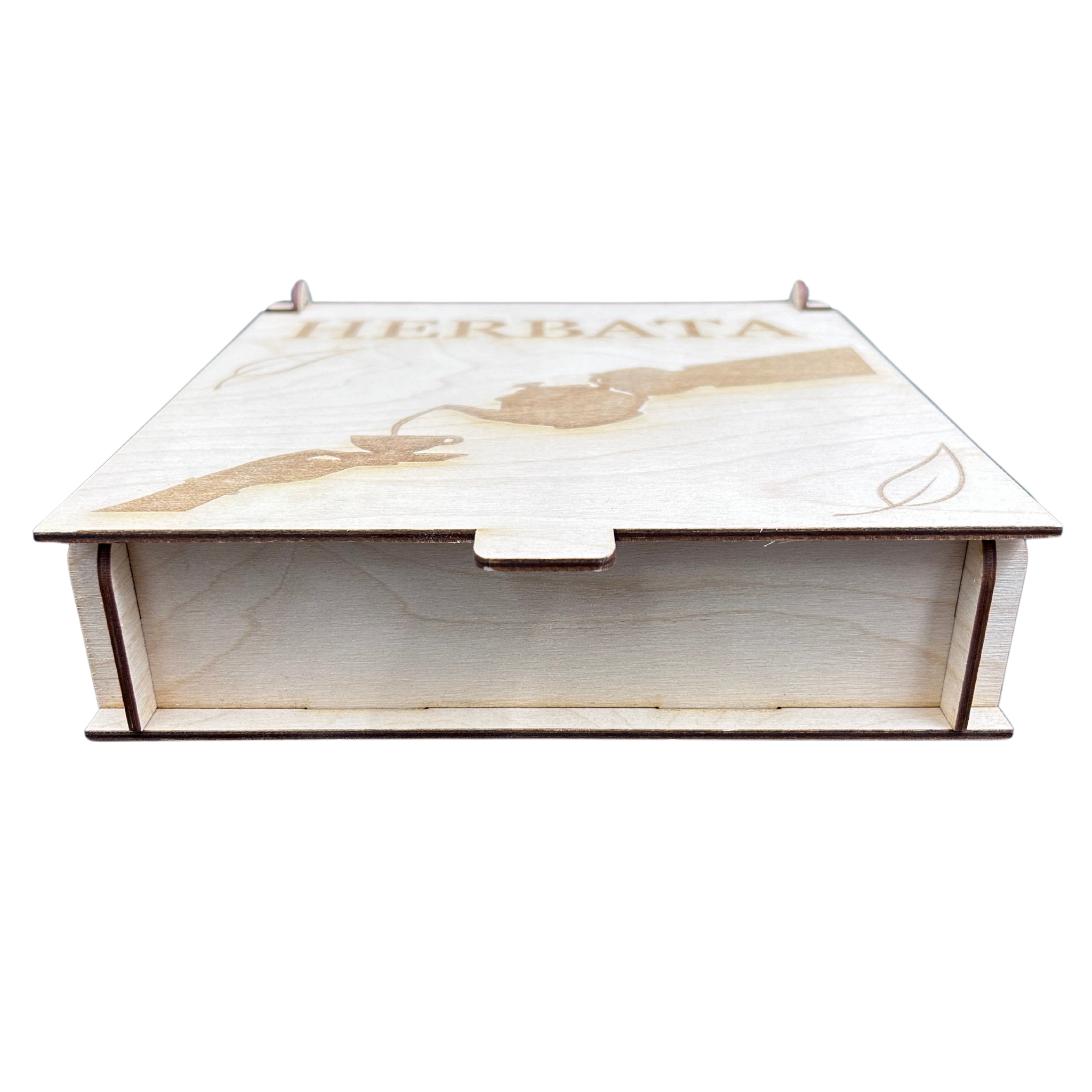 Drewniane pudełko ze sklejki box szkatułka na herbatę zamykane z podziałem