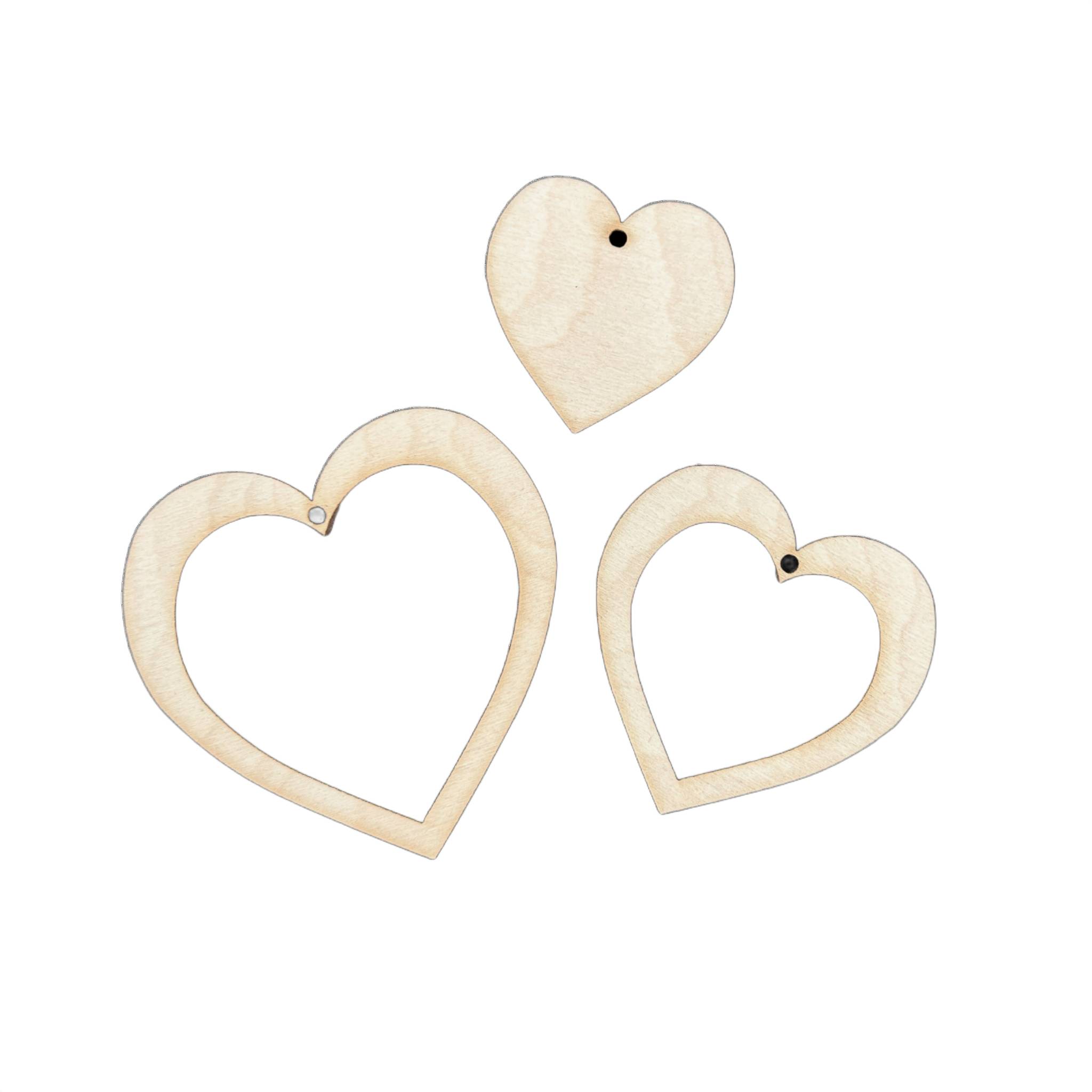 Drewniane zawieszki serca serce mini obręcz 3szt
