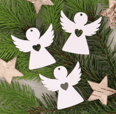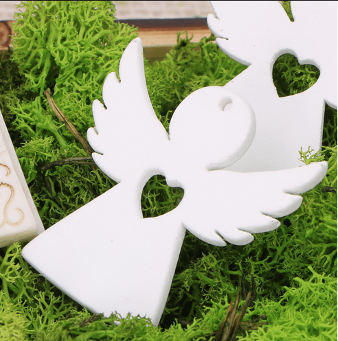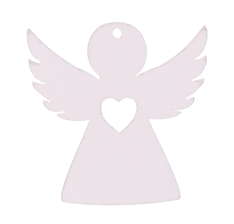 Ręcznie wykonany, pomalowany na biało aniołek z wyciętym sercem