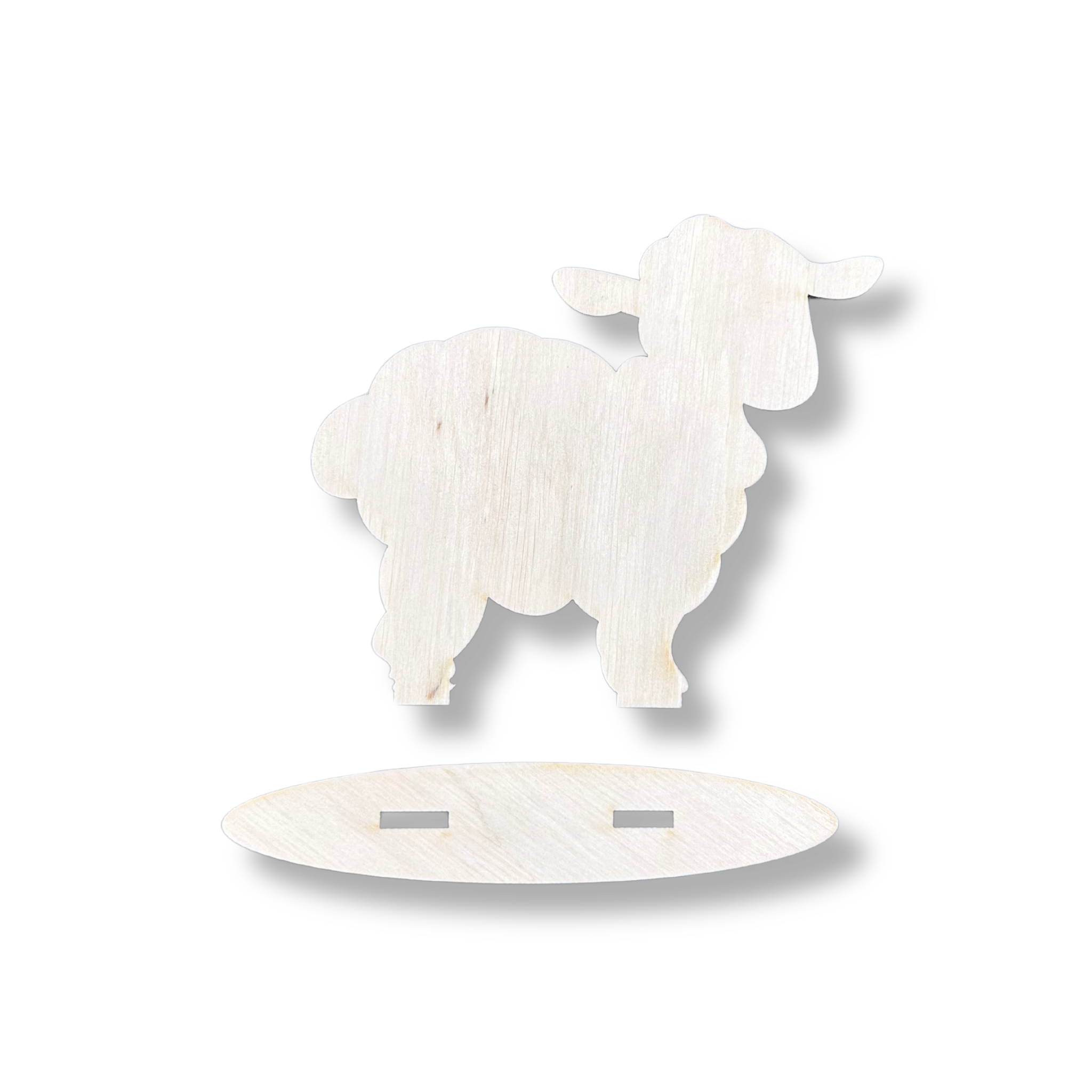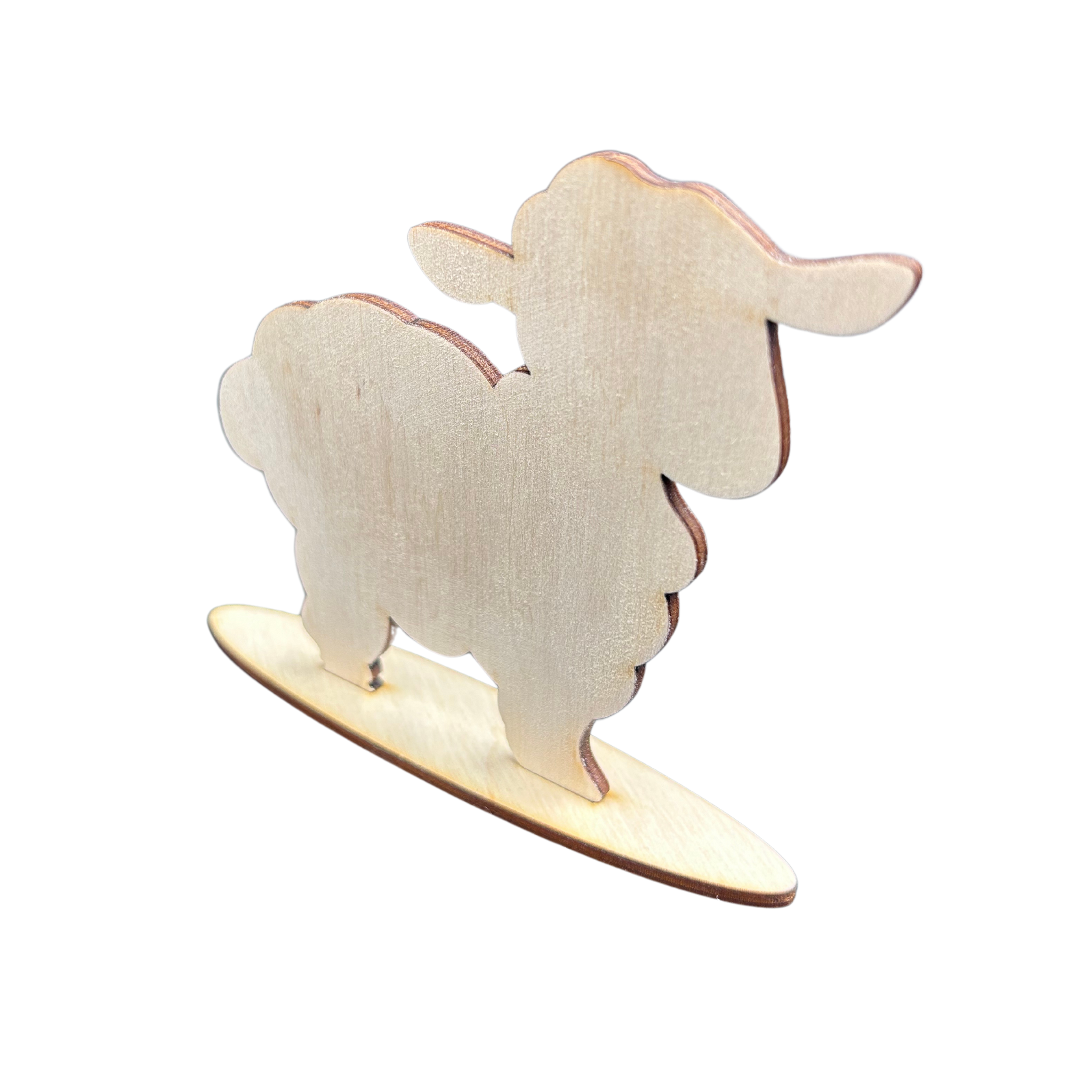 Drewniany baranek owca na podstawce decoupage ze sklejki dekor wielkanoc