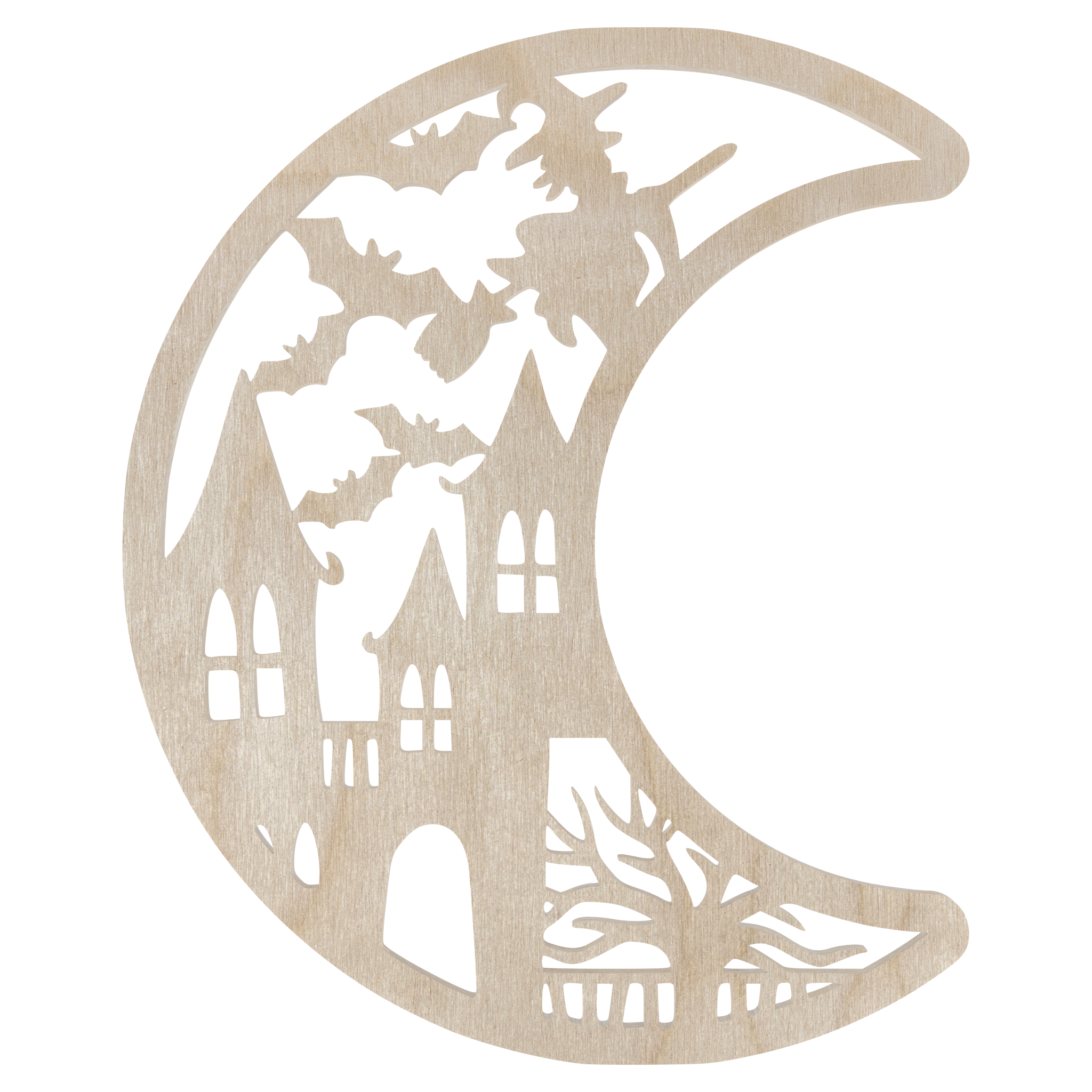 Drewniany dekor zawieszka KSIĘŻYC MIASTO WIEDŹMY HALLOWEEN decoupage ozdoba ze sklejki baza