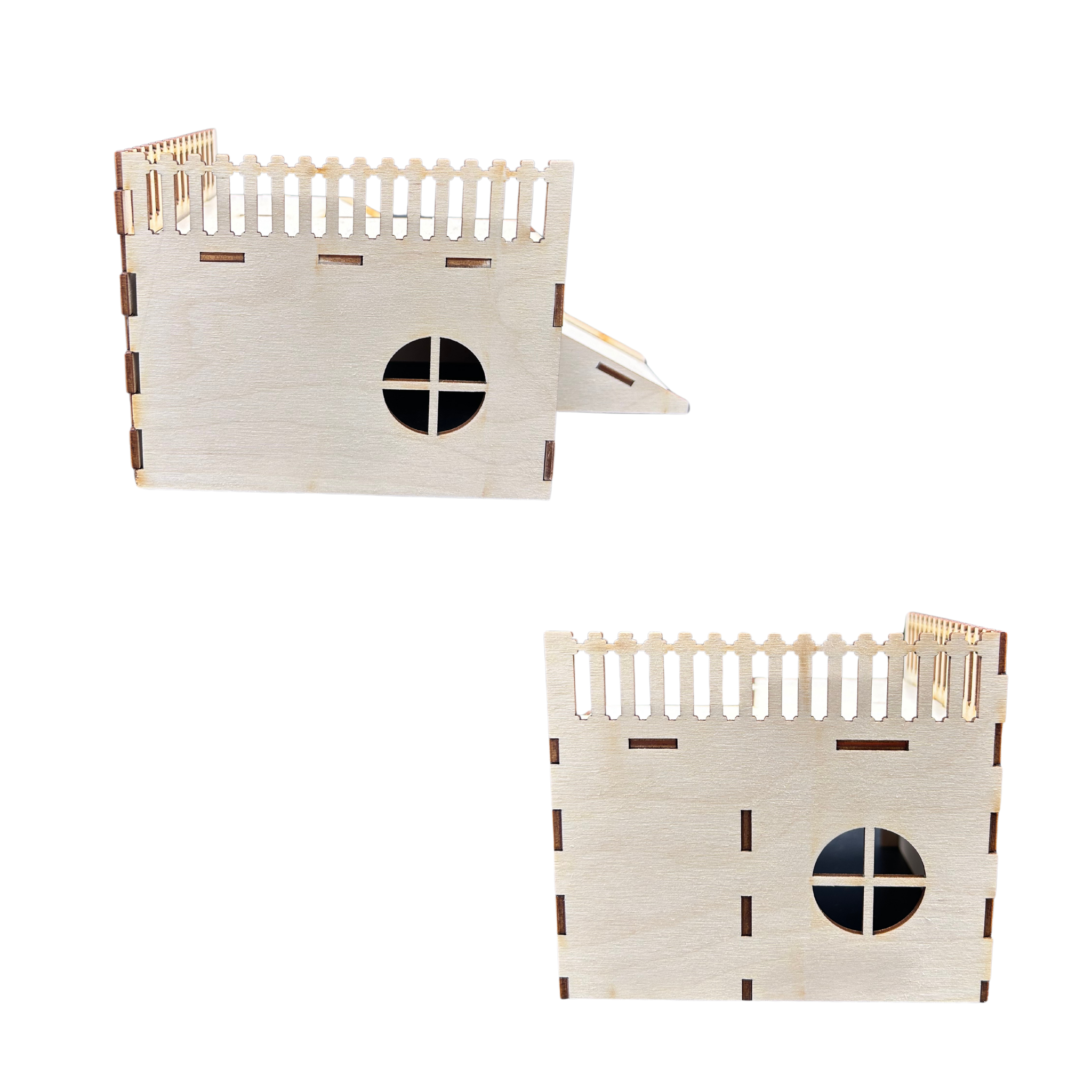 Drewniany dom domek ze sklejki dla chomika myszki gryzonia piętrowy
