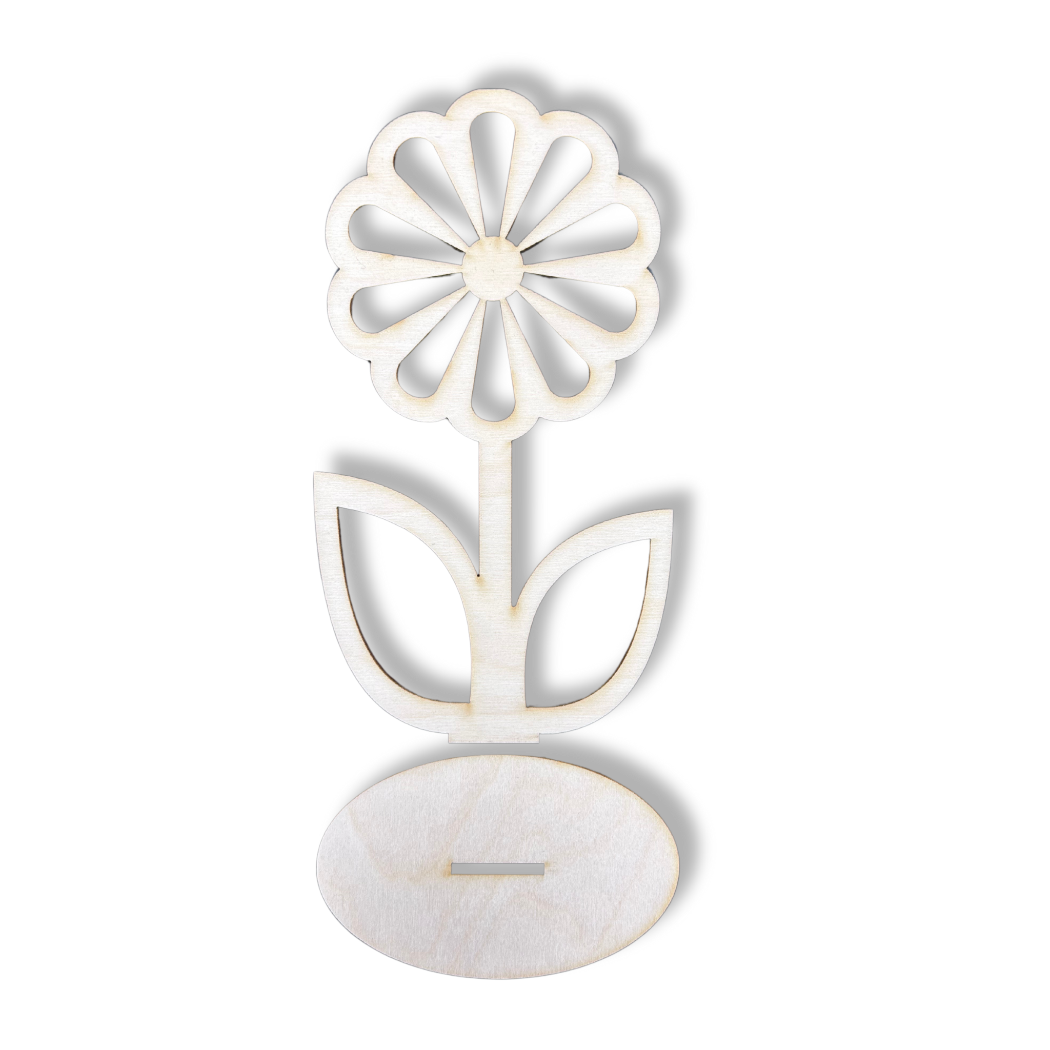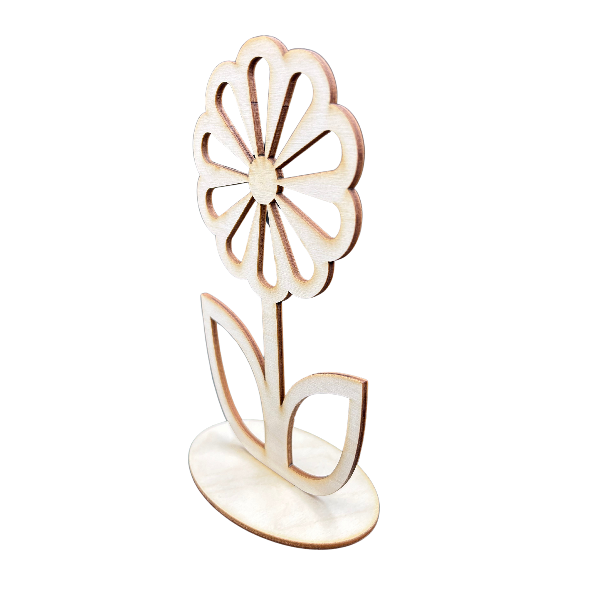 Drewniany kwiatek kwiat stojący na podstawce prezent dekor decoupage 17 cm