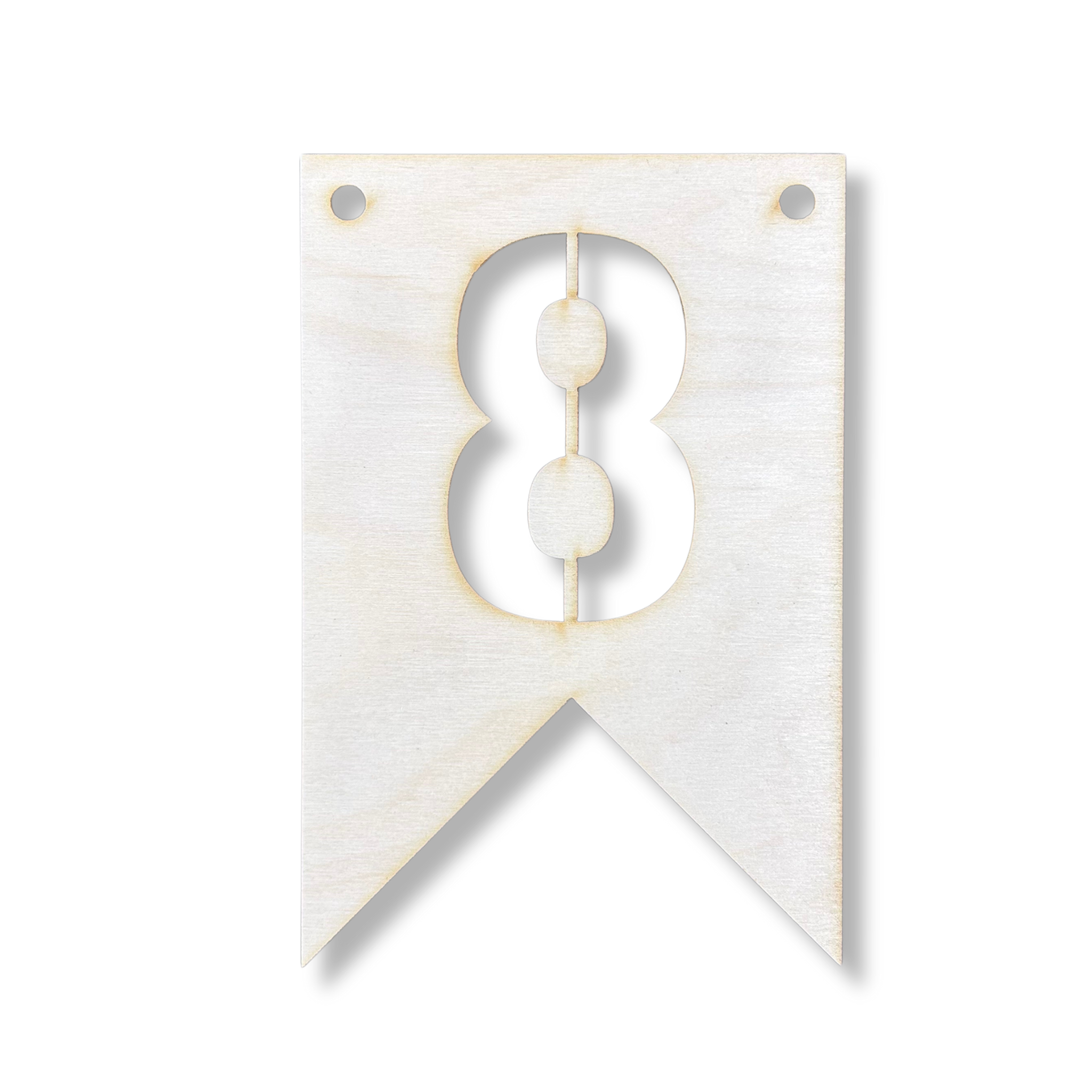 Drewniany proporczyk girlanda baner zawieszka chorągiewka do pokoju CYFRA 8