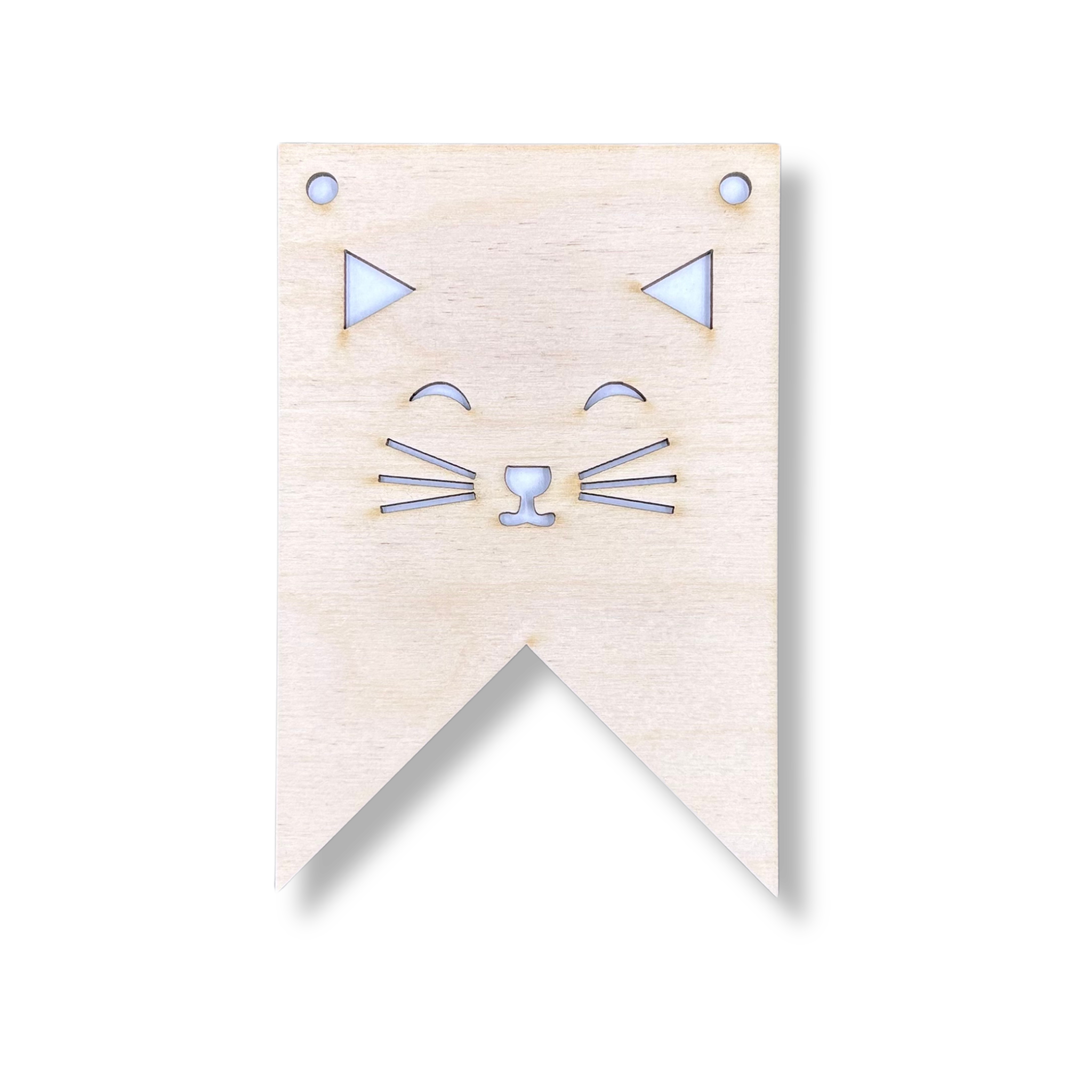 Drewniany proporczyk girlanda baner zawieszka chorągiewka do pokoju KOT Kocurek
