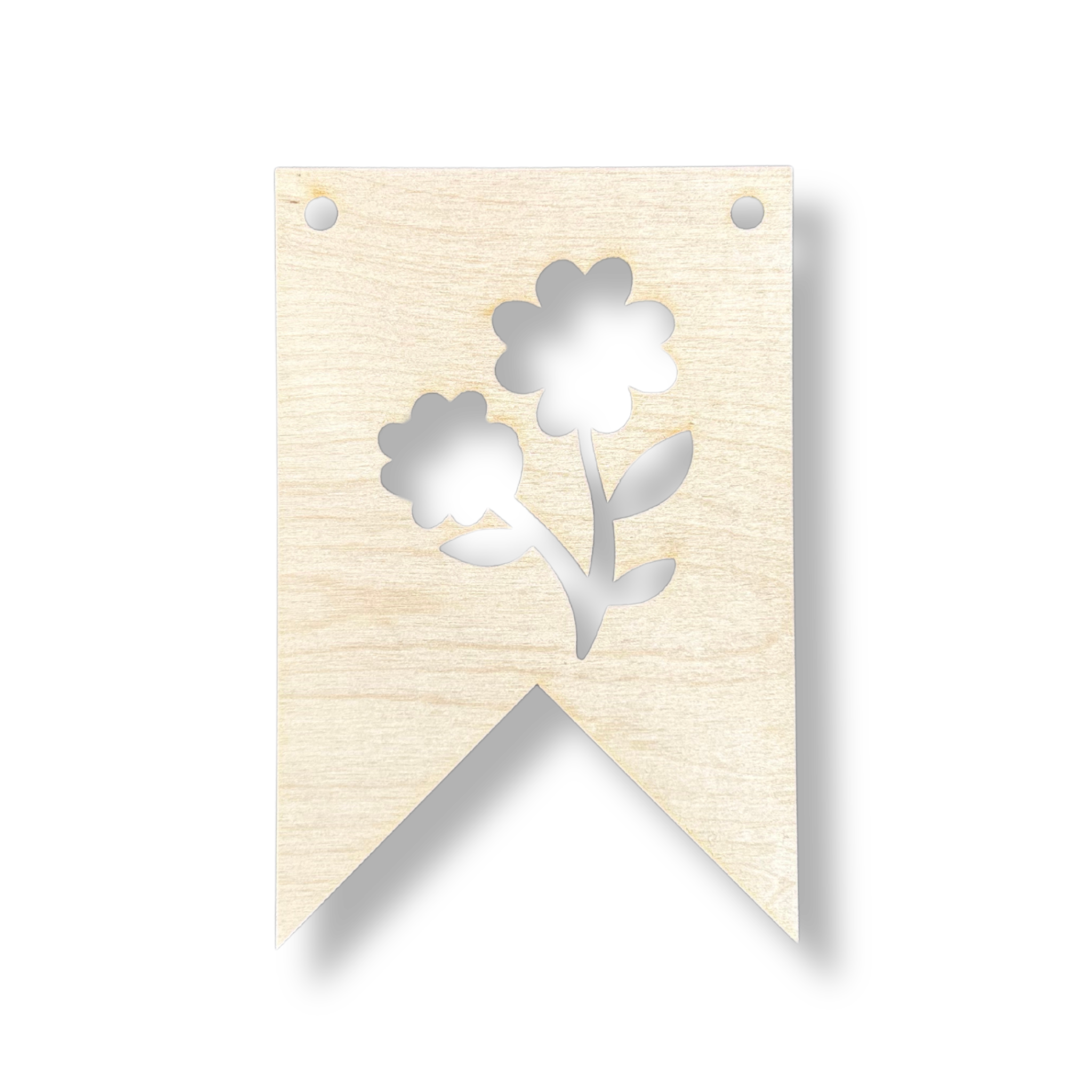 Drewniany proporczyk girlanda baner zawieszka chorągiewka do pokoju KWIATY