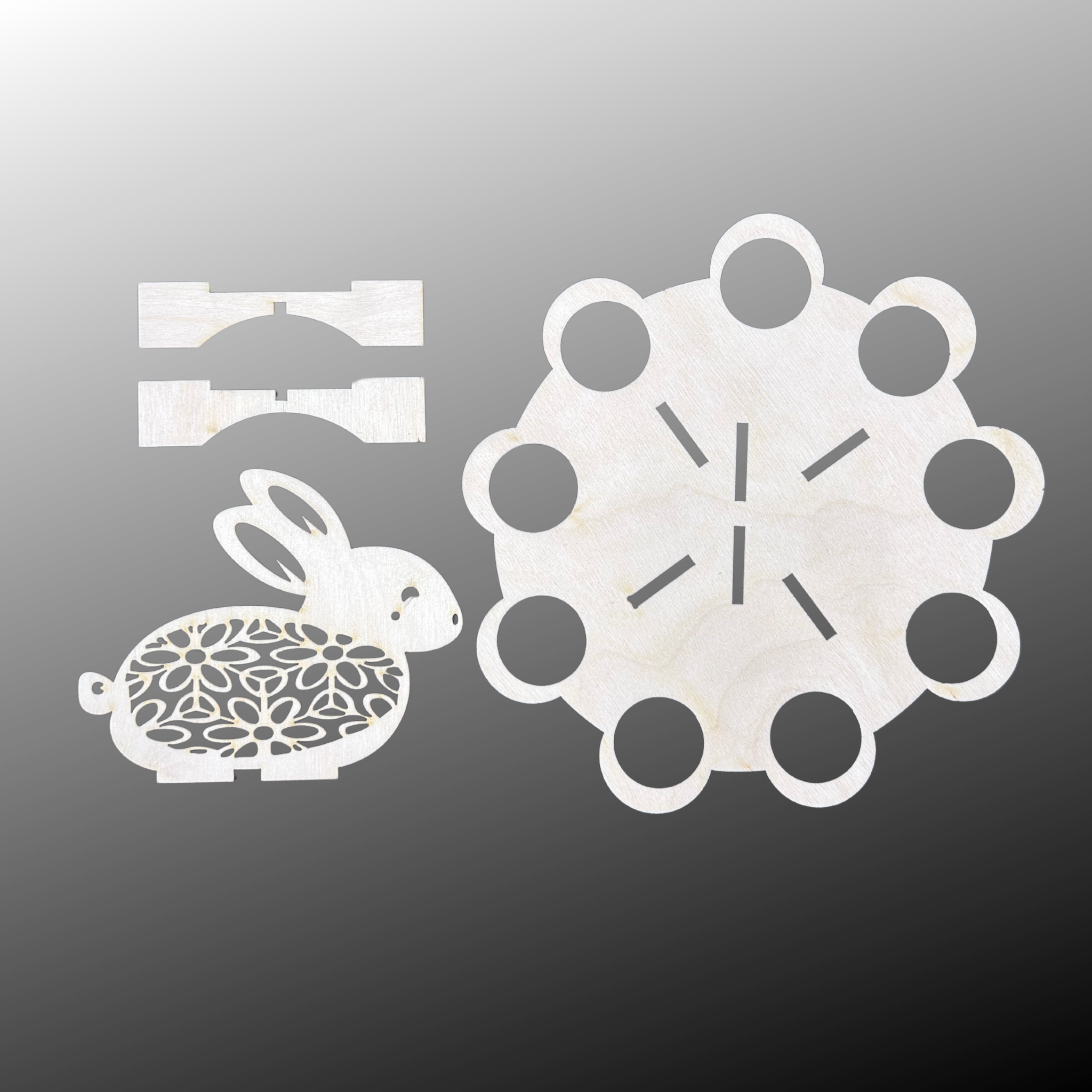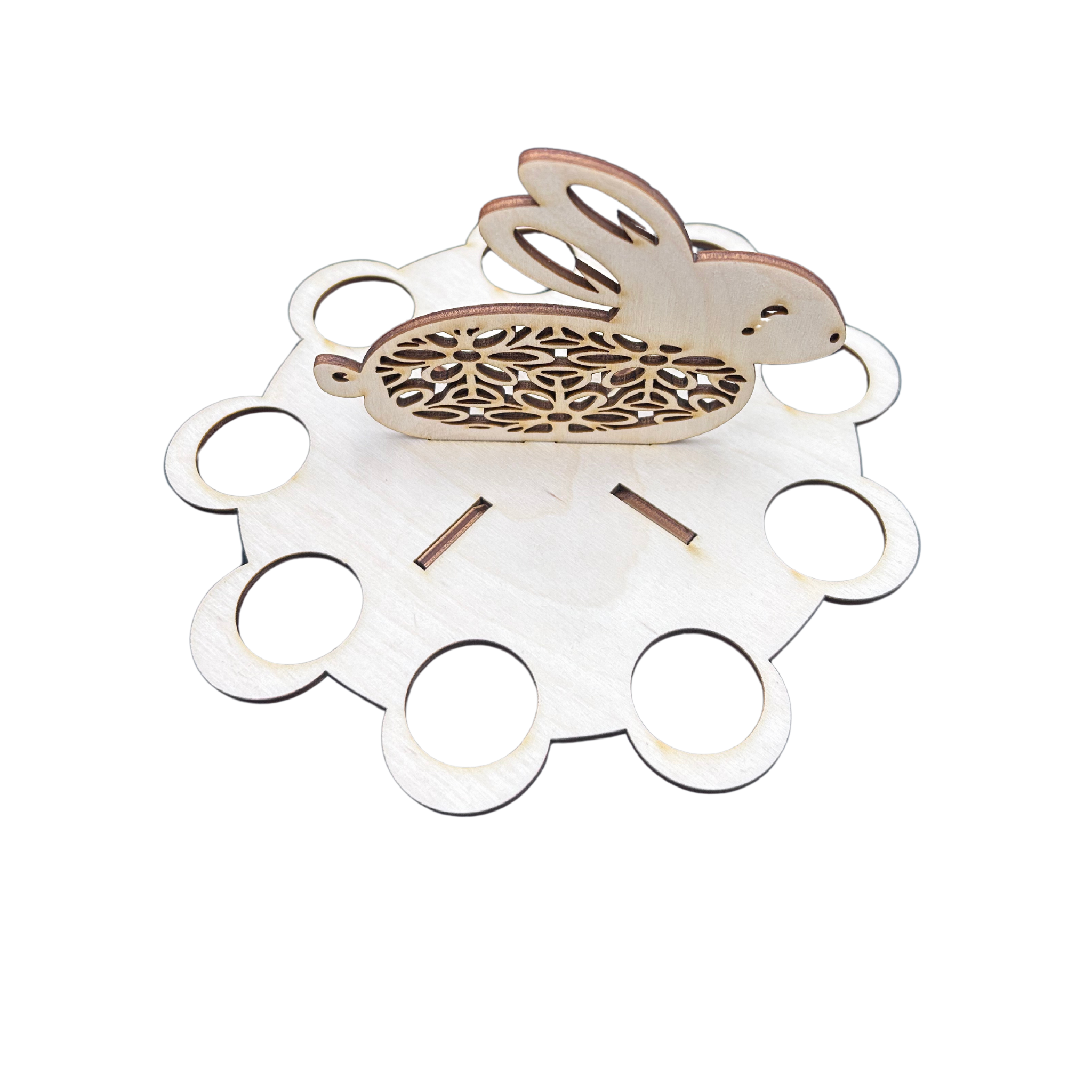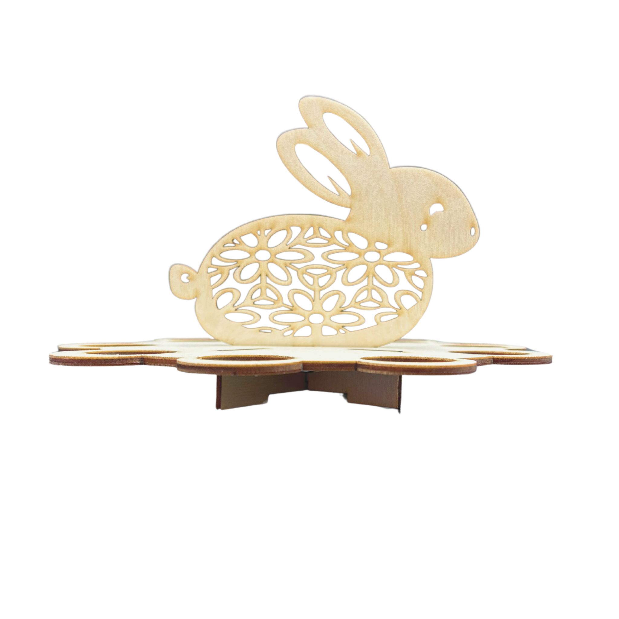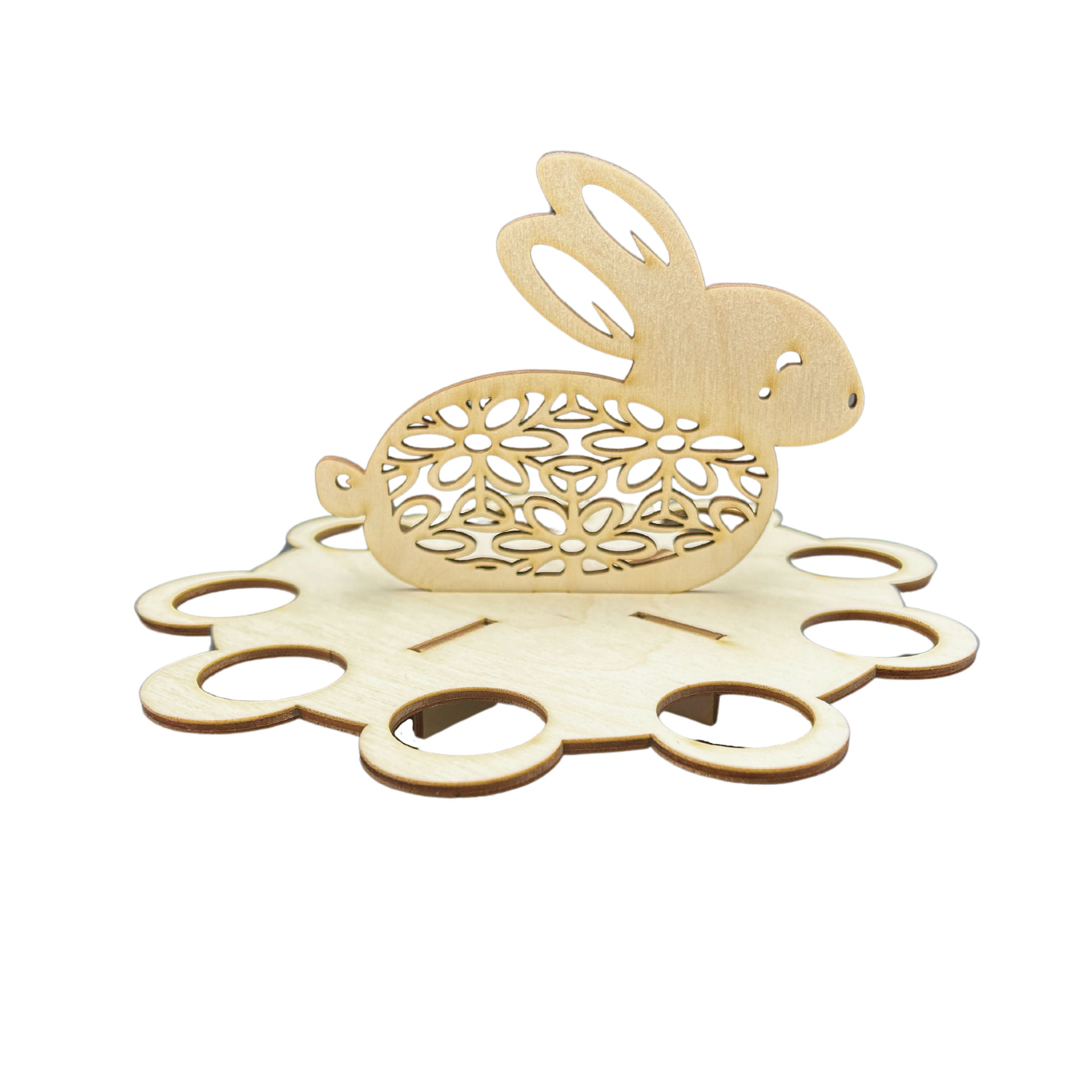 Drewniany stojak podstawka koszyk na jajka pisanki zając królik decoupage