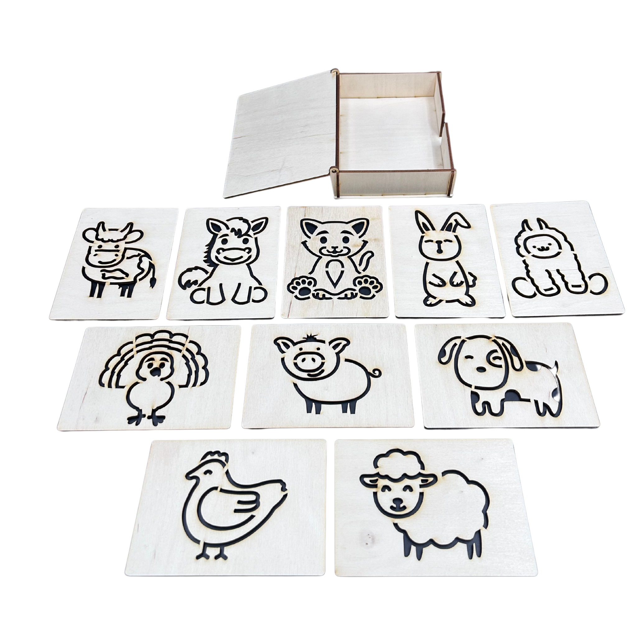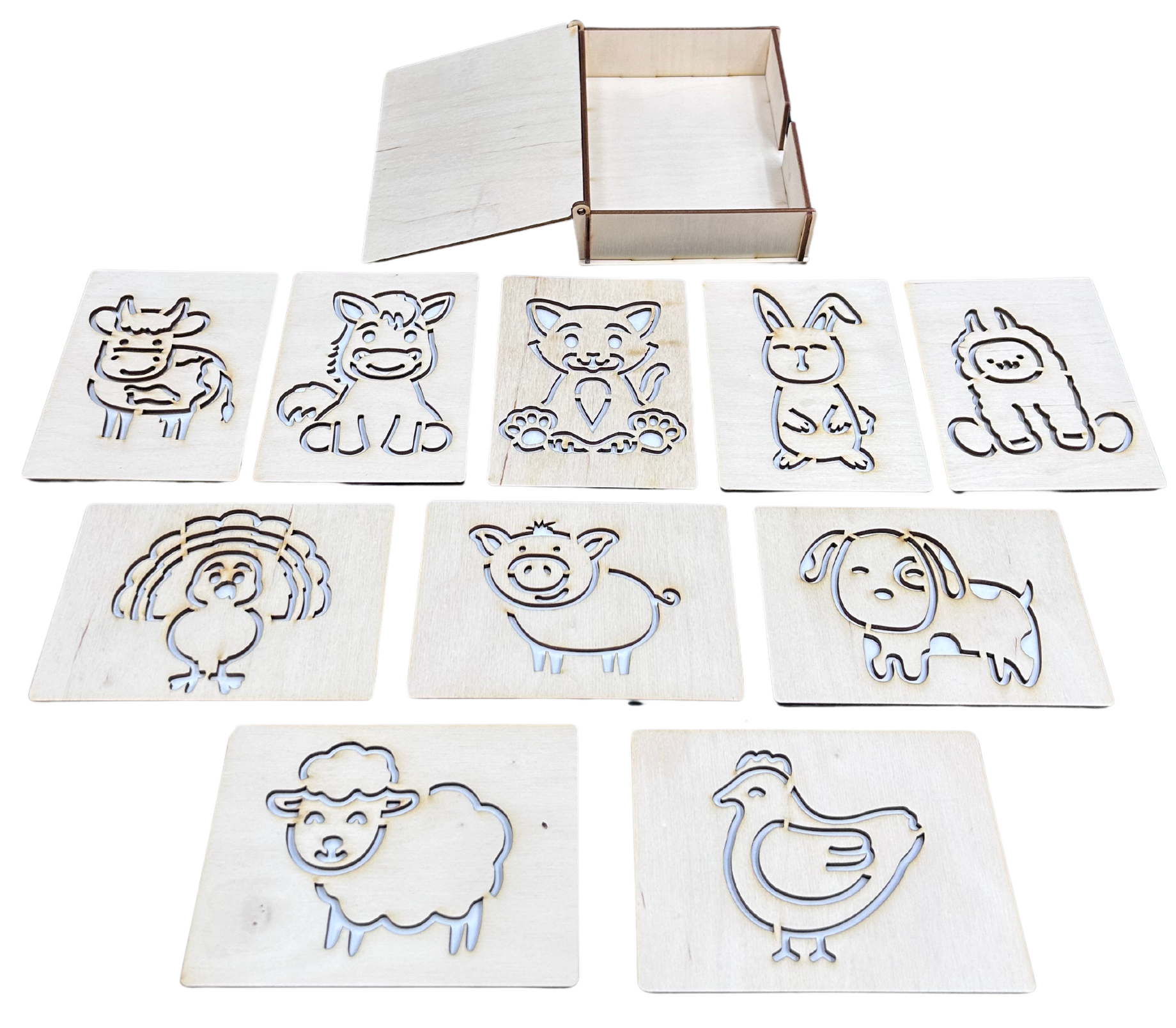 Drewniany szablon szablony zestaw do rysowania dzieci zwierzęta w pudełku