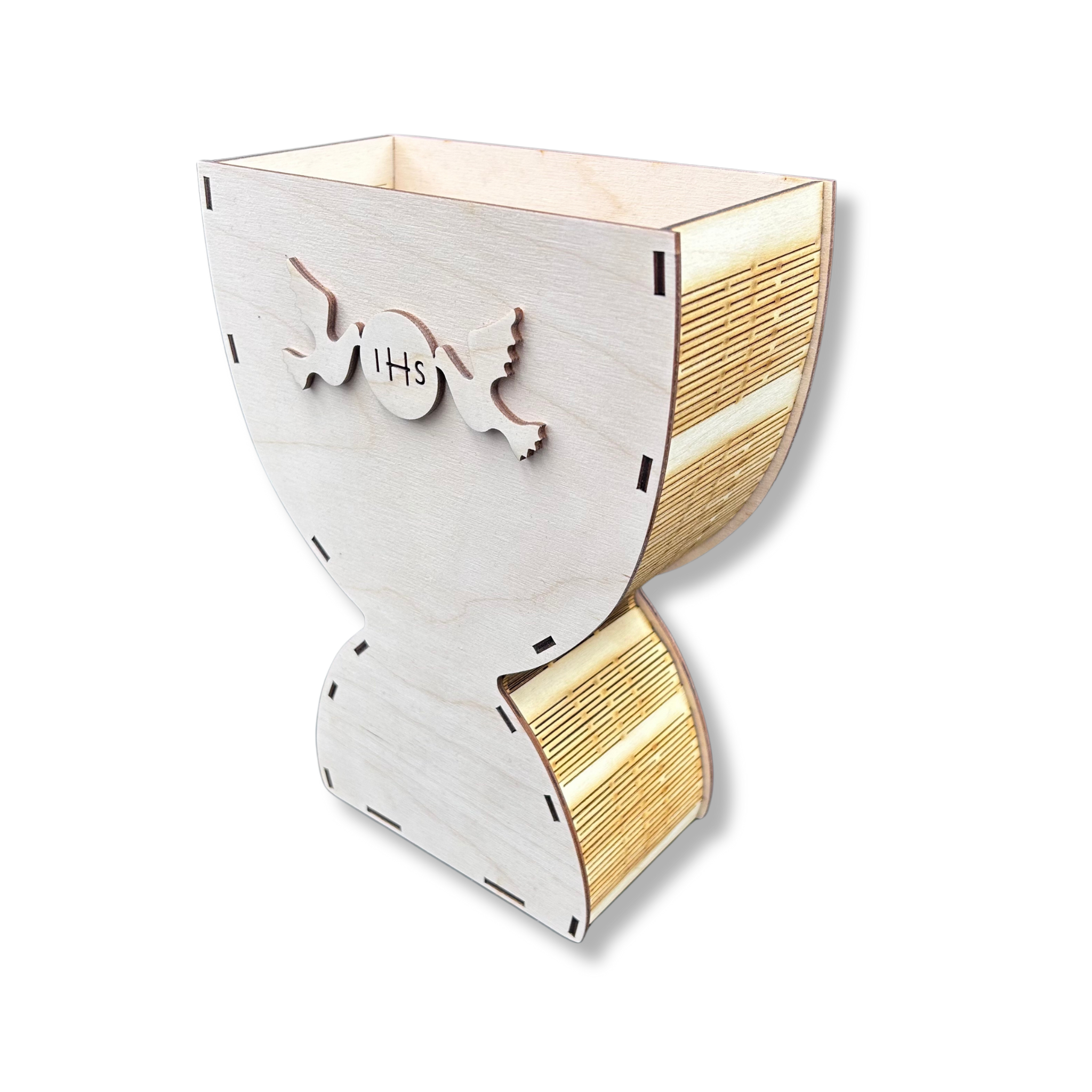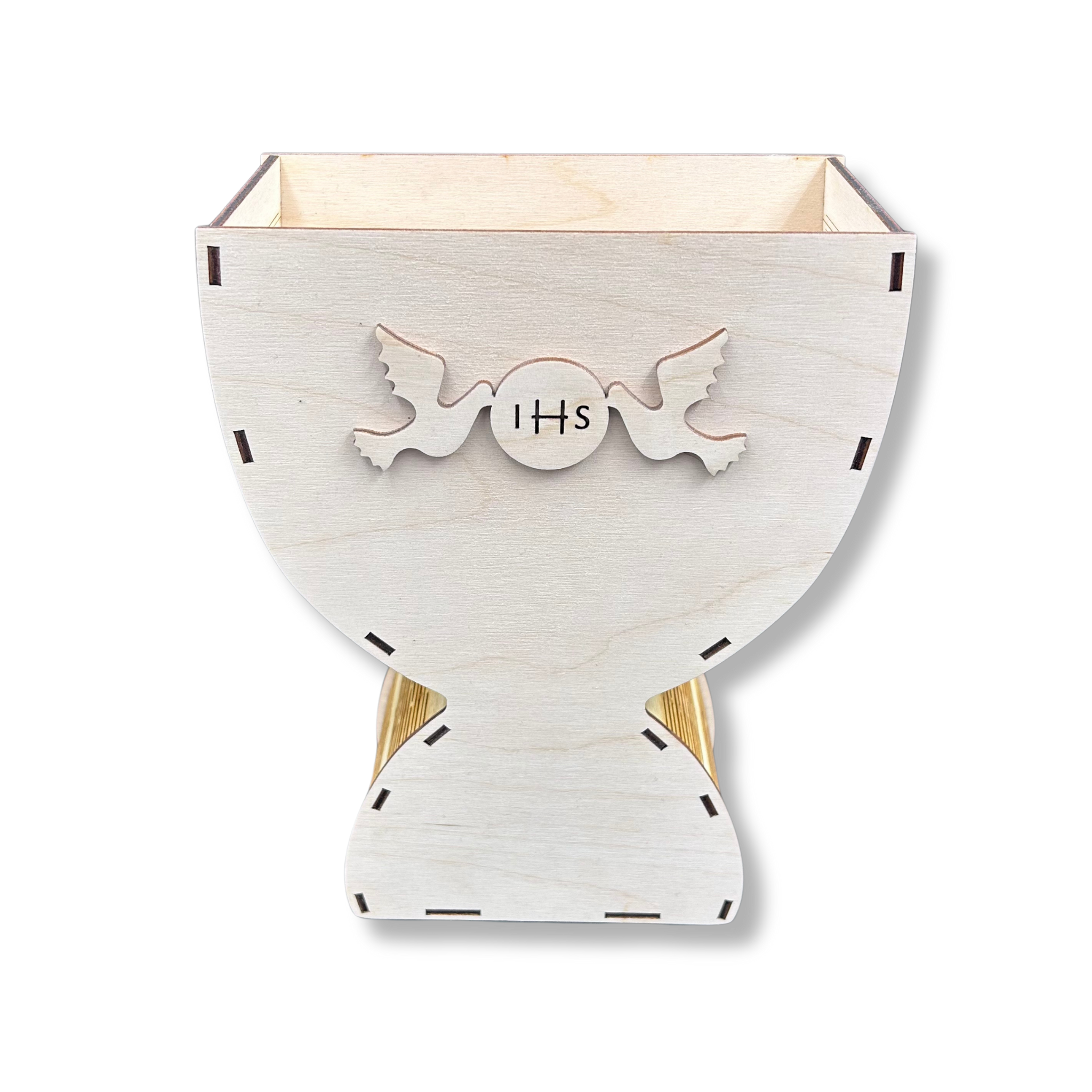 Drewniany wazon KIELICH PUCHAR IHS gołąbki komunia prezent