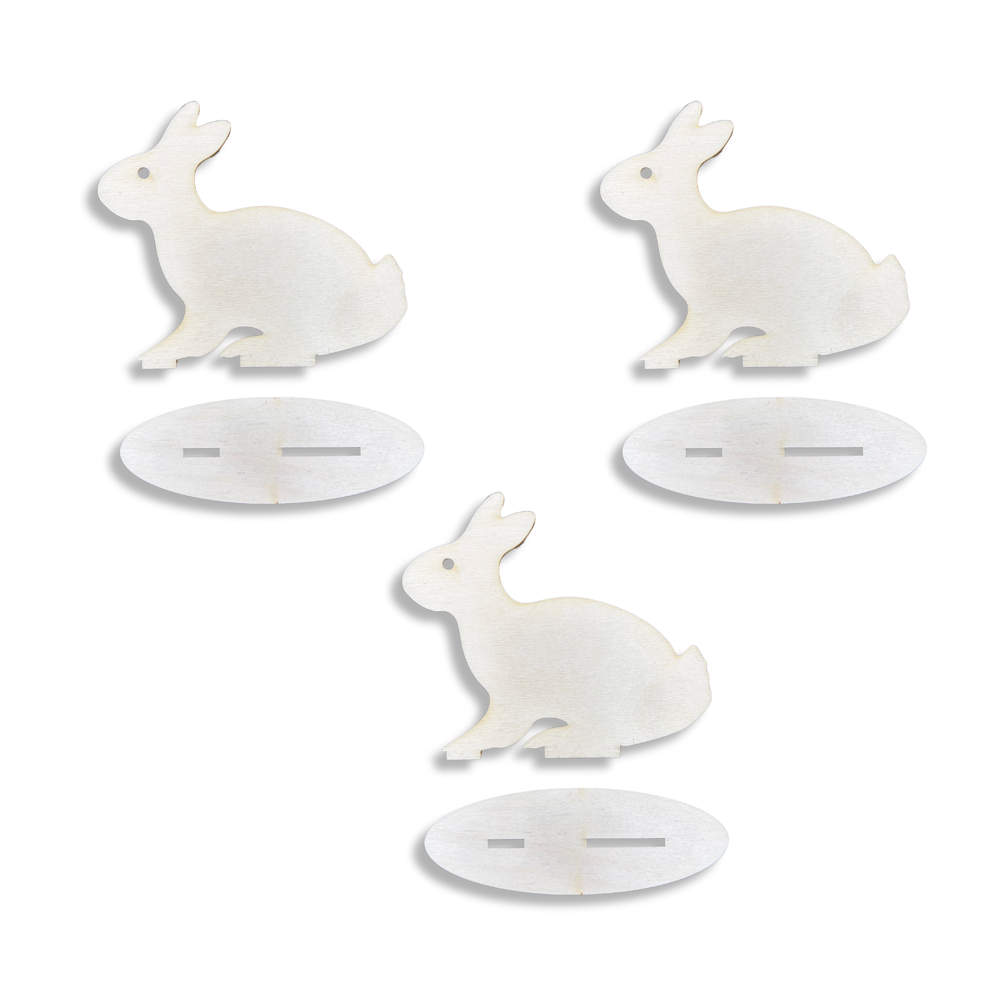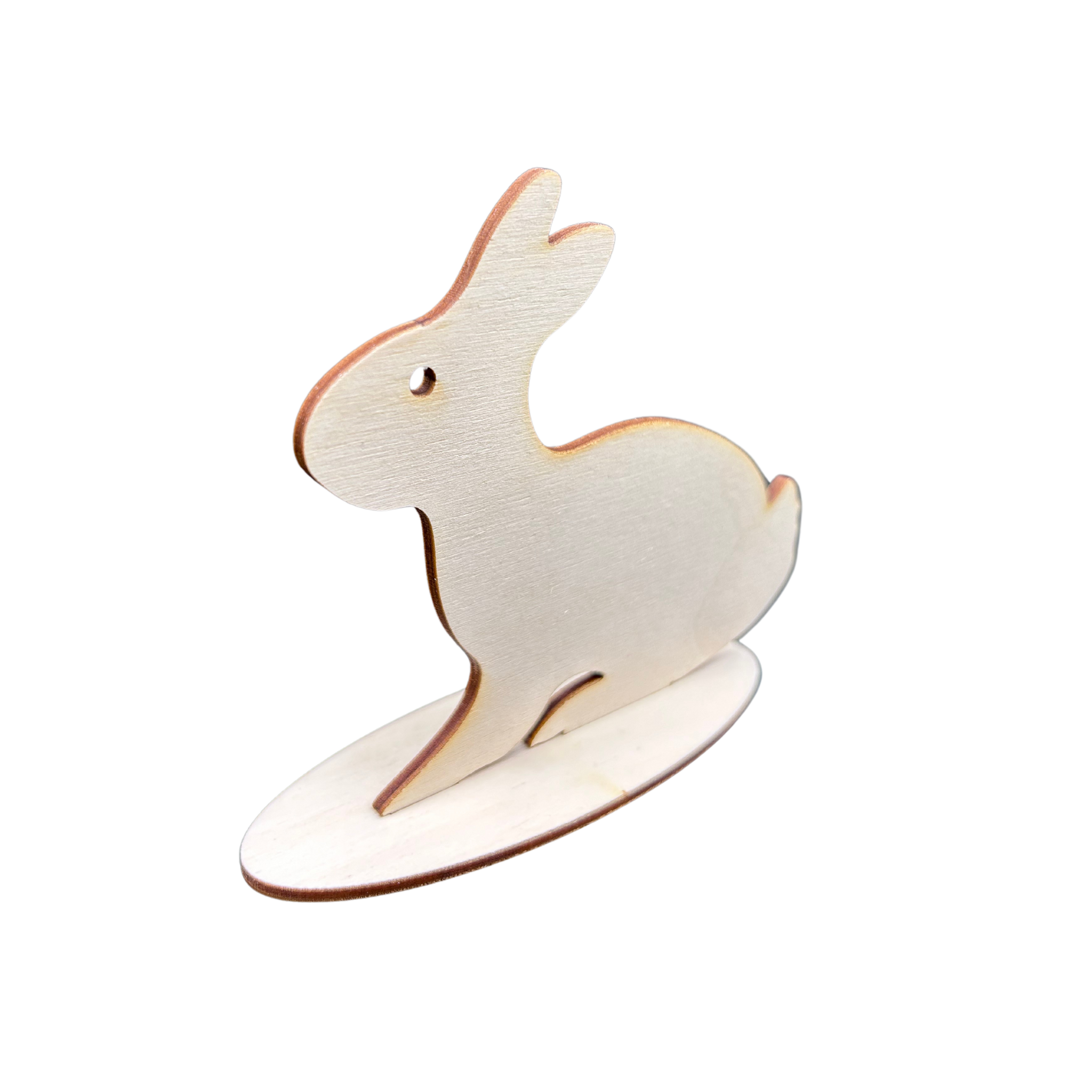 Drewniany zając zajączek królik na podstawce decoupage ze sklejki 10cm 3szt