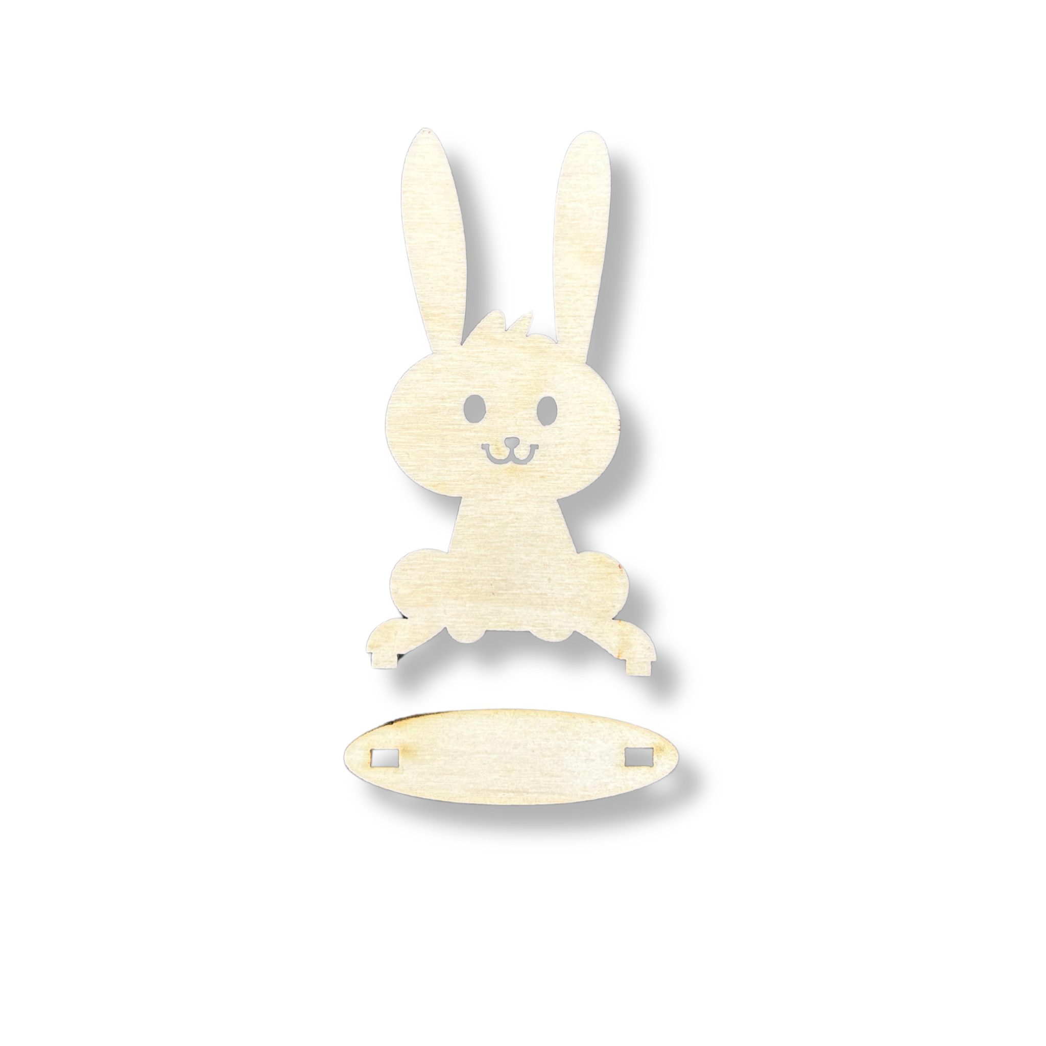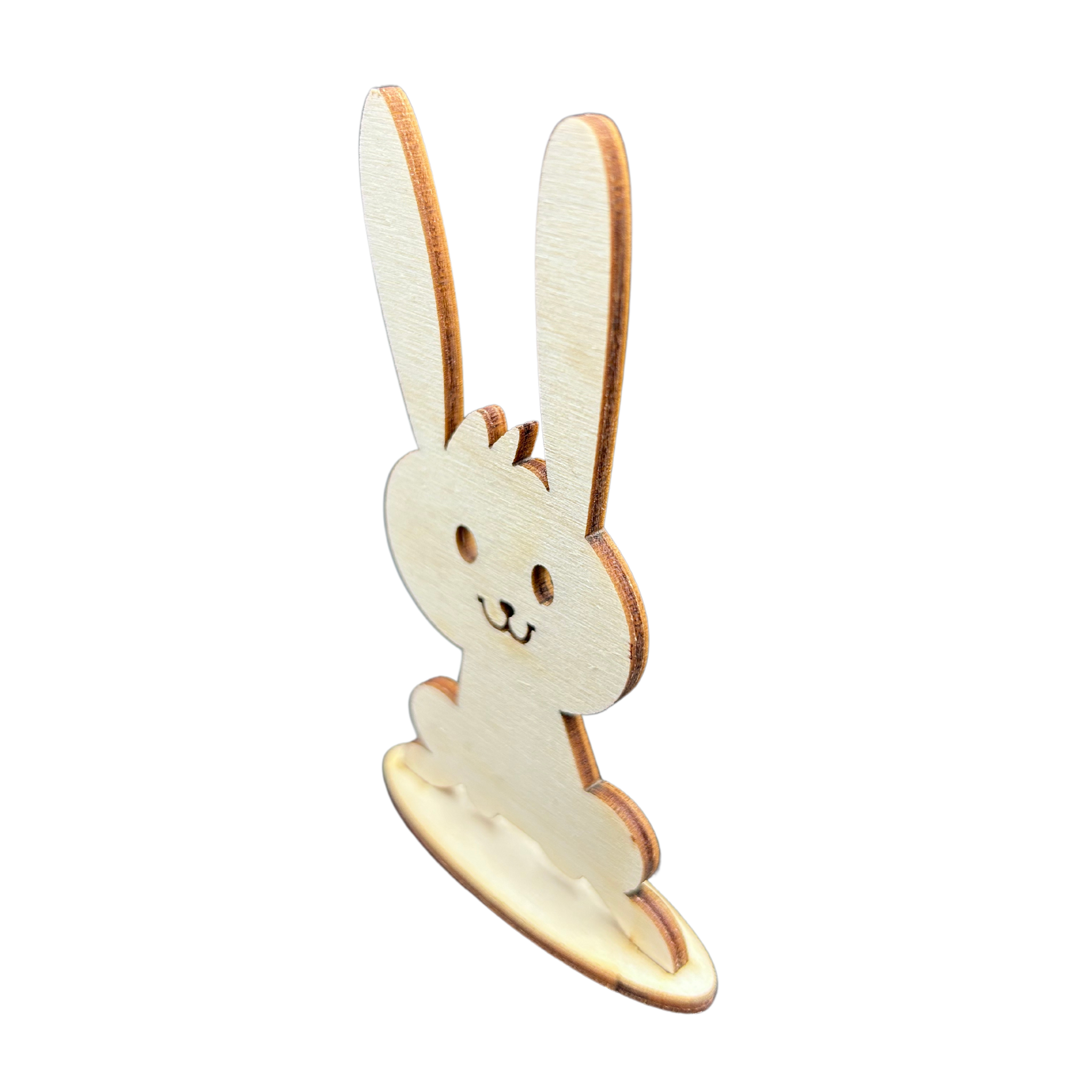 Drewniany zając zajączek królik na podstawce decoupage ze sklejki dekor