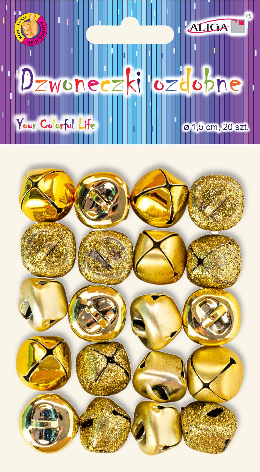 Dzwoneczki ozdobne złote mix wzorów – brokatowe, metalizowanie, matowe.
