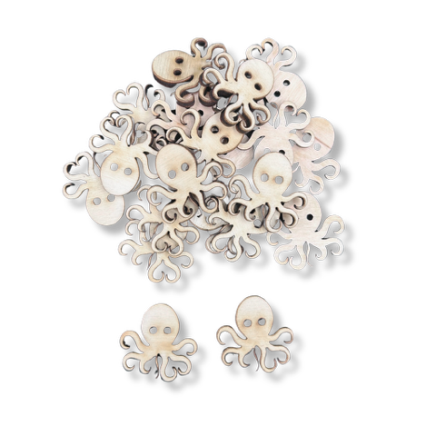 Guziki ozdobne drewniane OŚMIORNICE 20 szt 25 mm naturalne