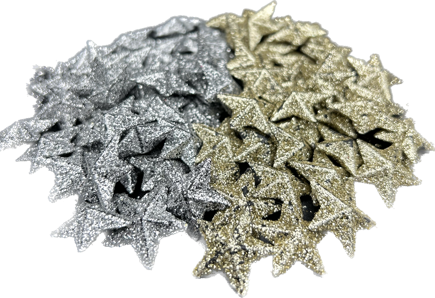 Gwiazdki dekoracyjne złote/srebrne z brokatem