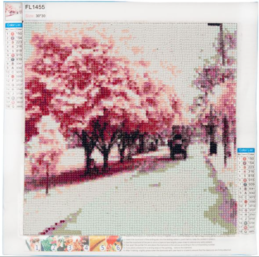 - płótno, na którym nadrukowany został wzór i które pokryte jest specjalną warstwą klejącą, która umożliwia przyklejanie diamencików