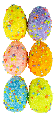 Jajka styropianowe kolorowe z dekoracjami i wzorami.
