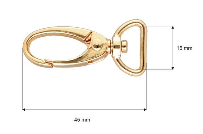 Karabińczyk metalowy 15 mm krab złoto połysk