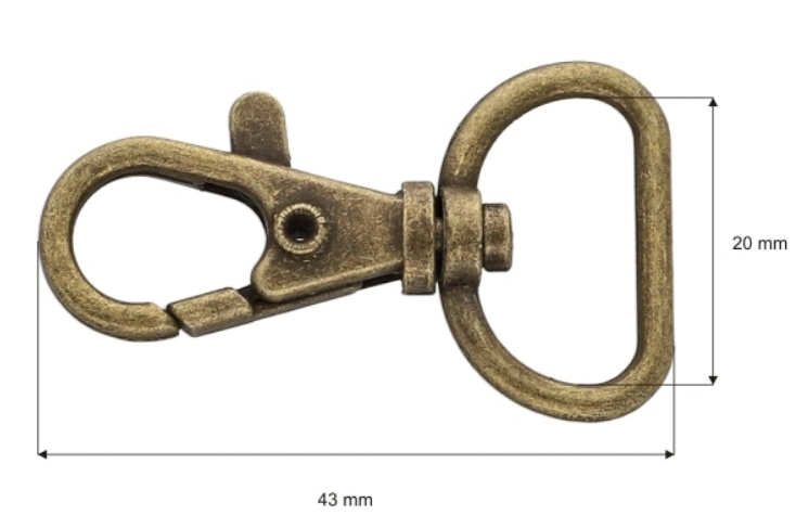 Karabińczyk metalowy 20 mm 5,9g stare złoto 2szt