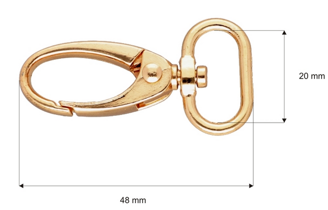 Karabińczyk metalowy 20 mm krab jasne złoto