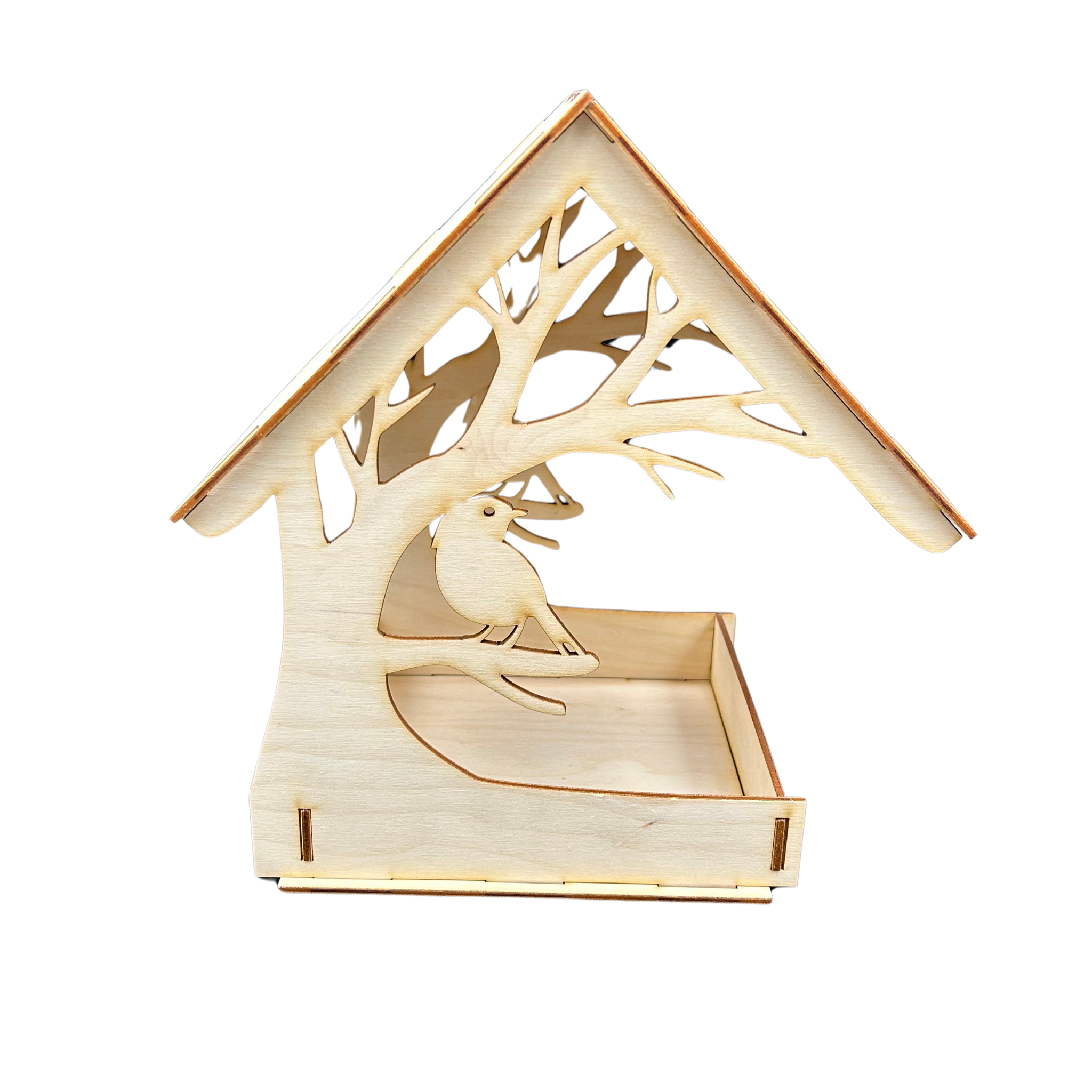 Karmnik budka domek dla ptaków drewniany ze sklejki decoupage dekor 26cm