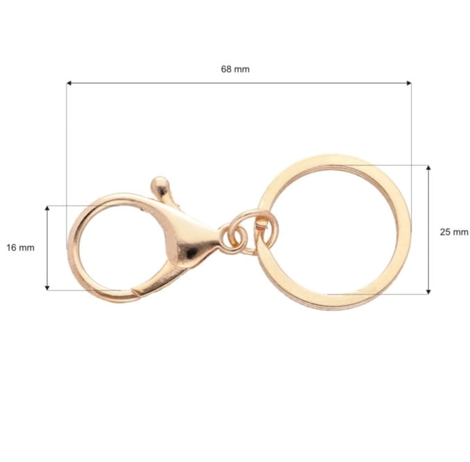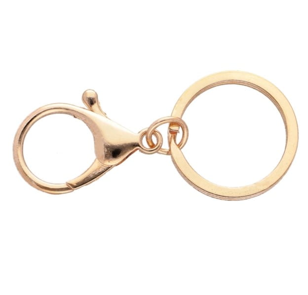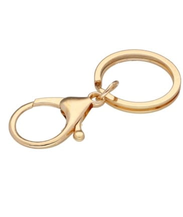 Metalowa zawieszka do breloka z karabińczykiem i kółkiem w kolorze złota – umożliwia przymocowanie dekoracyjnych przywieszek przy torebkach, plecakach lub przy kluczach. Ich klasyczny wygląd sprawdzi się zarówno przy bogato zdobionych charmsach, jak i subtelnych brelokach ze skaju.