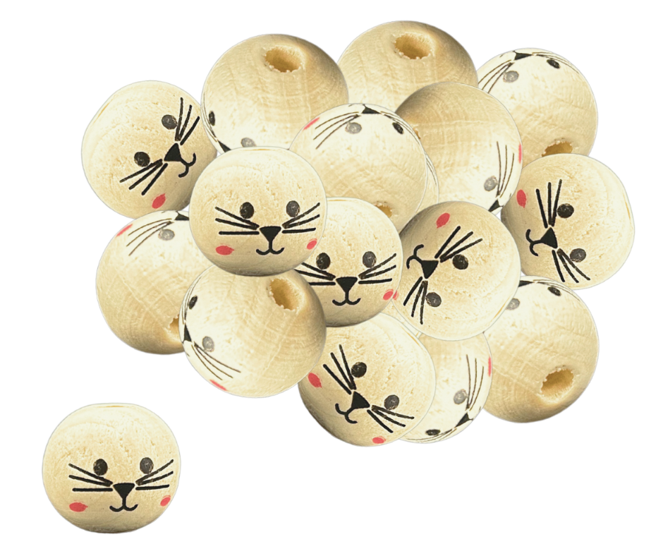 Korale koraliki koty drewniane główki 20mm 20szt
