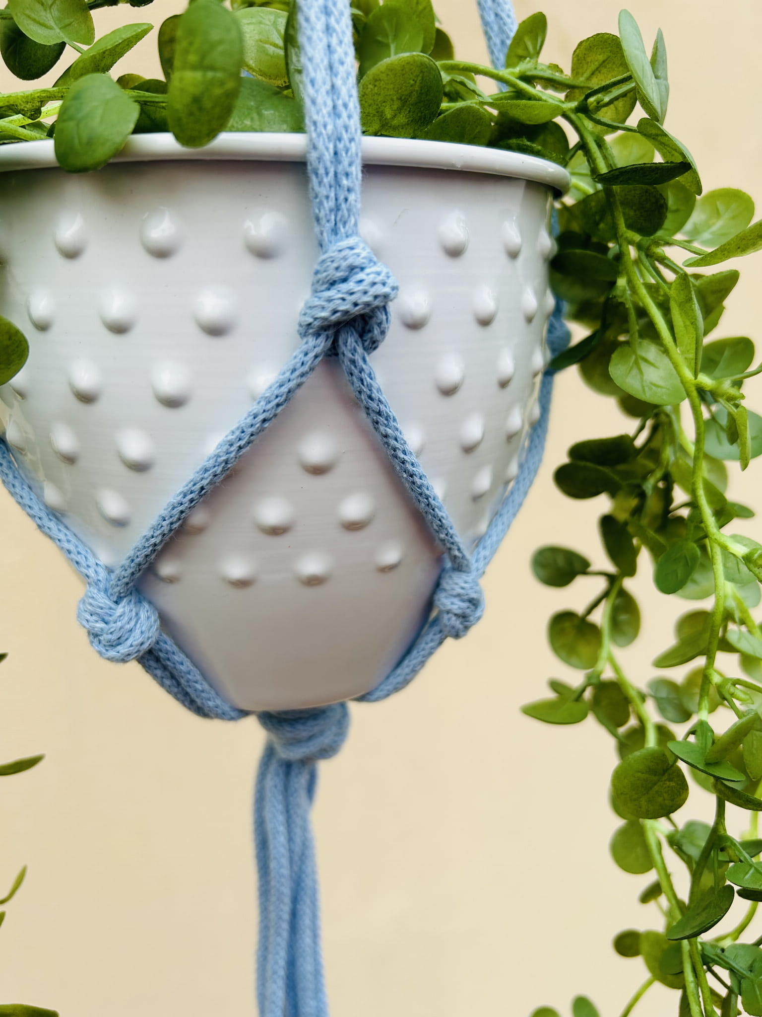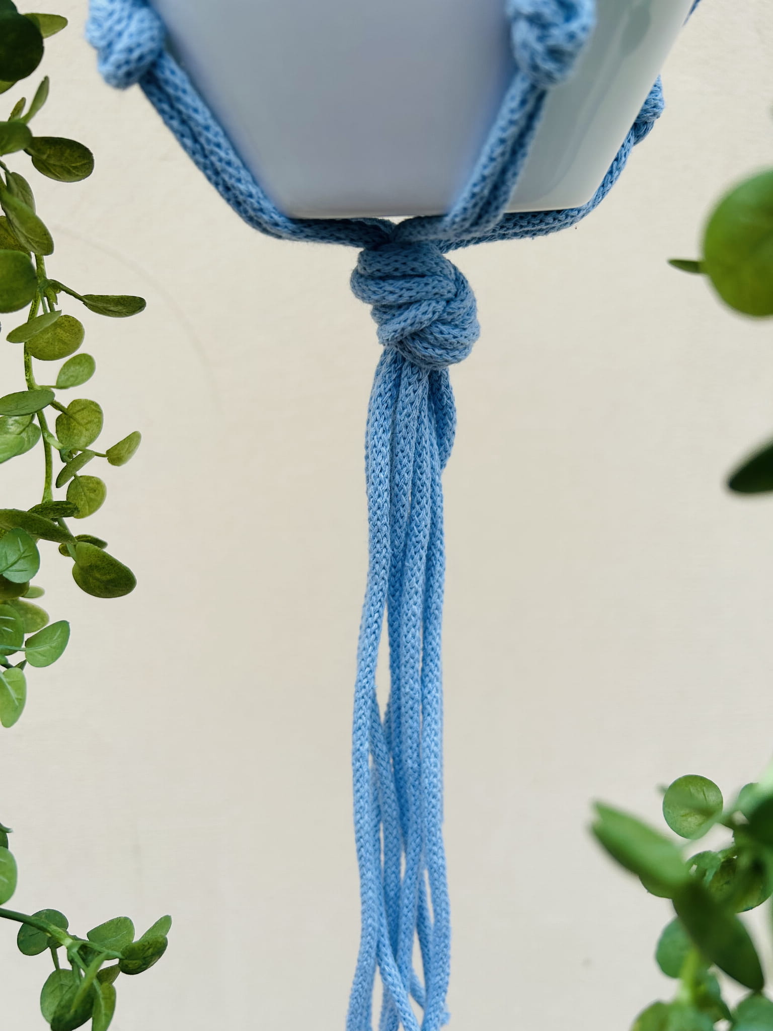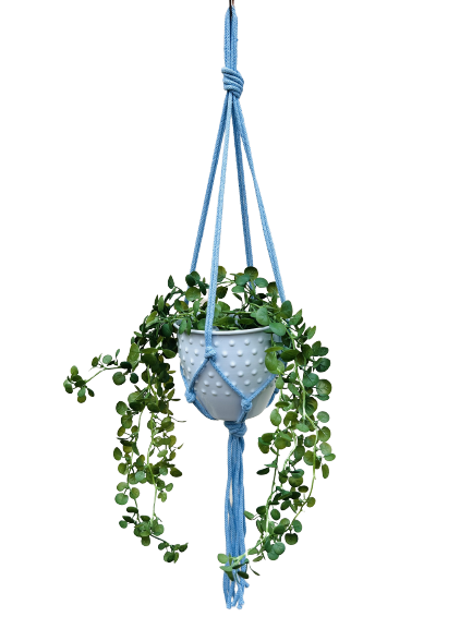 Kwietnik wiszący makrama ze sznurka boho BŁĘKIT