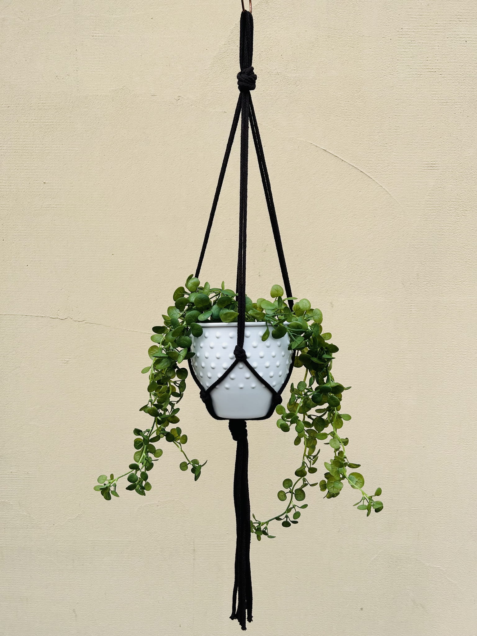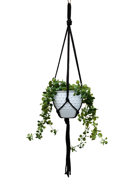 - Kwietnik można zawiesić na haczyku pod sufitem, na ozdobnym haku przy ścianie lub przewiesić przez drewniany kijek tworząc kompozycję z kilku kwietników.