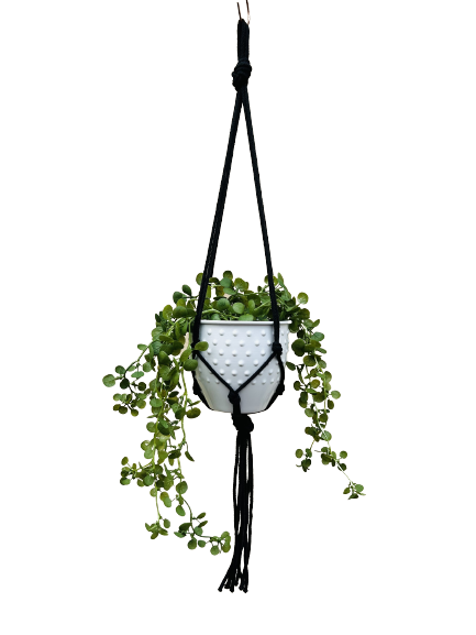 Kwietnik wiszący makrama ze sznurka boho CZARNY