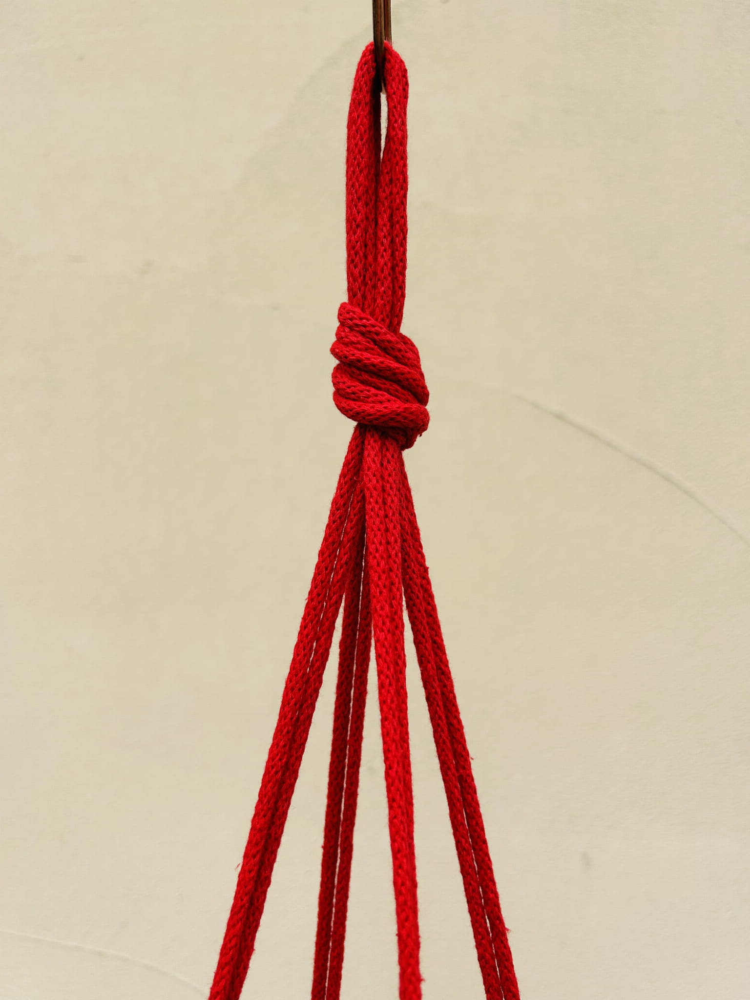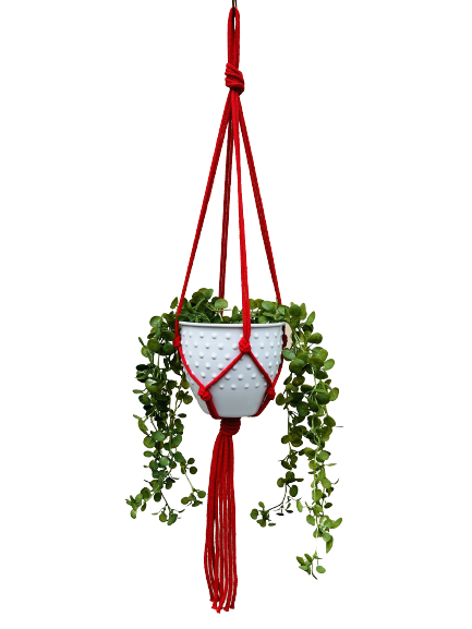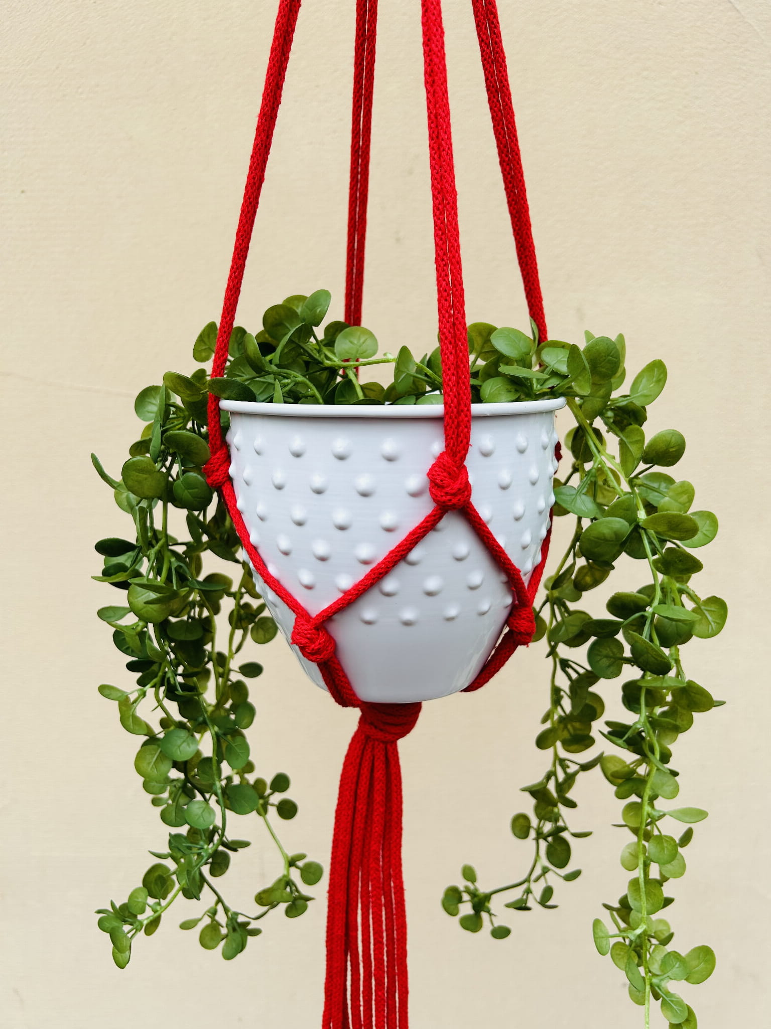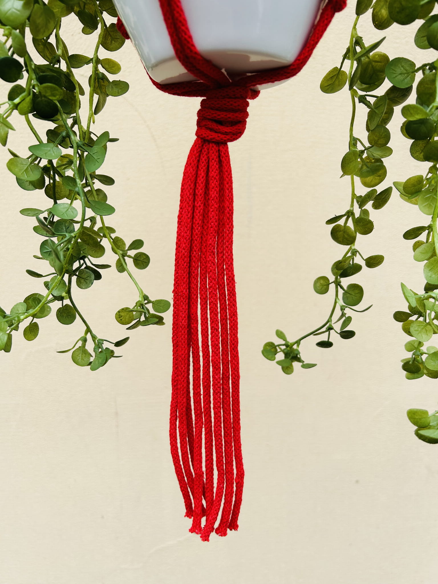 Kwietnik wiszący makrama ze sznurka boho CZERWONY