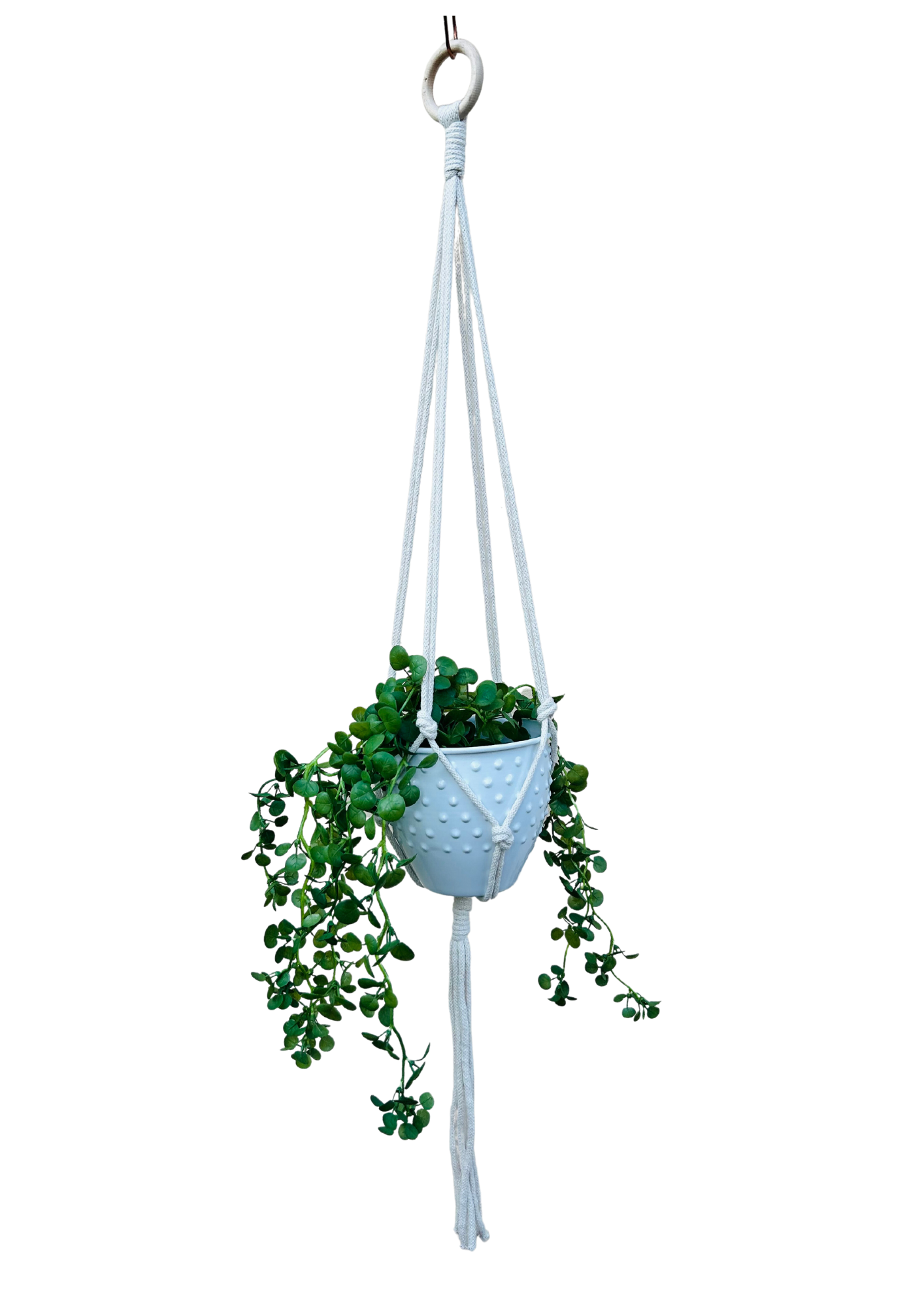Kwietnik wiszący makrama na drewnianym kółku. Wykonany ręcznie ze sznurka bawełnianego 5mm w kolorze kość słoniowa lub czarnym.