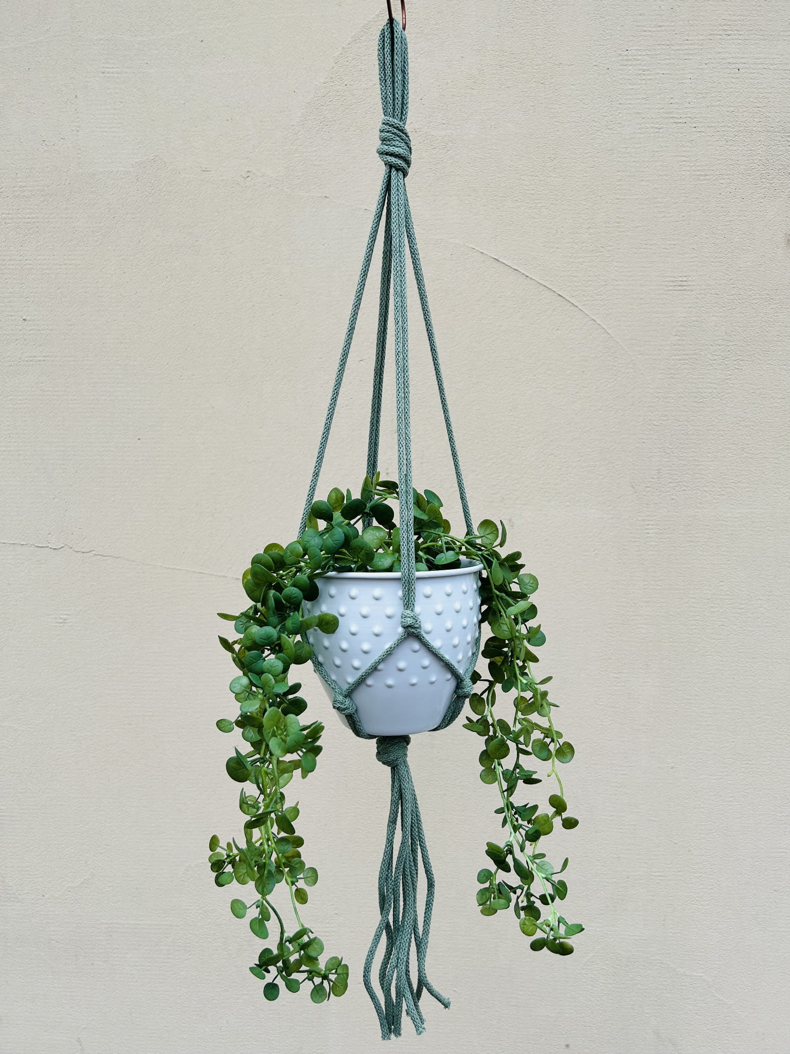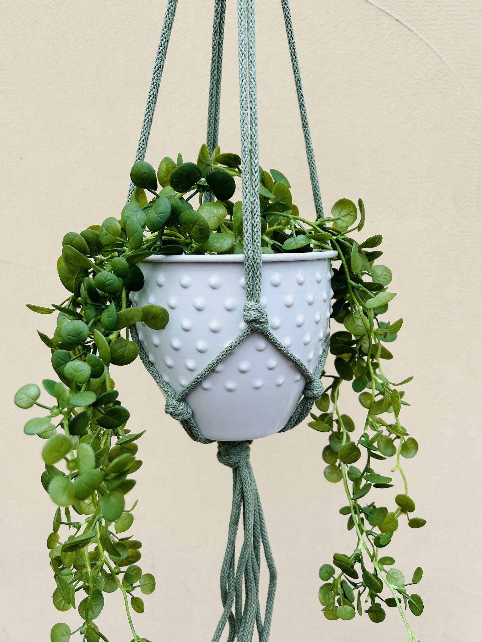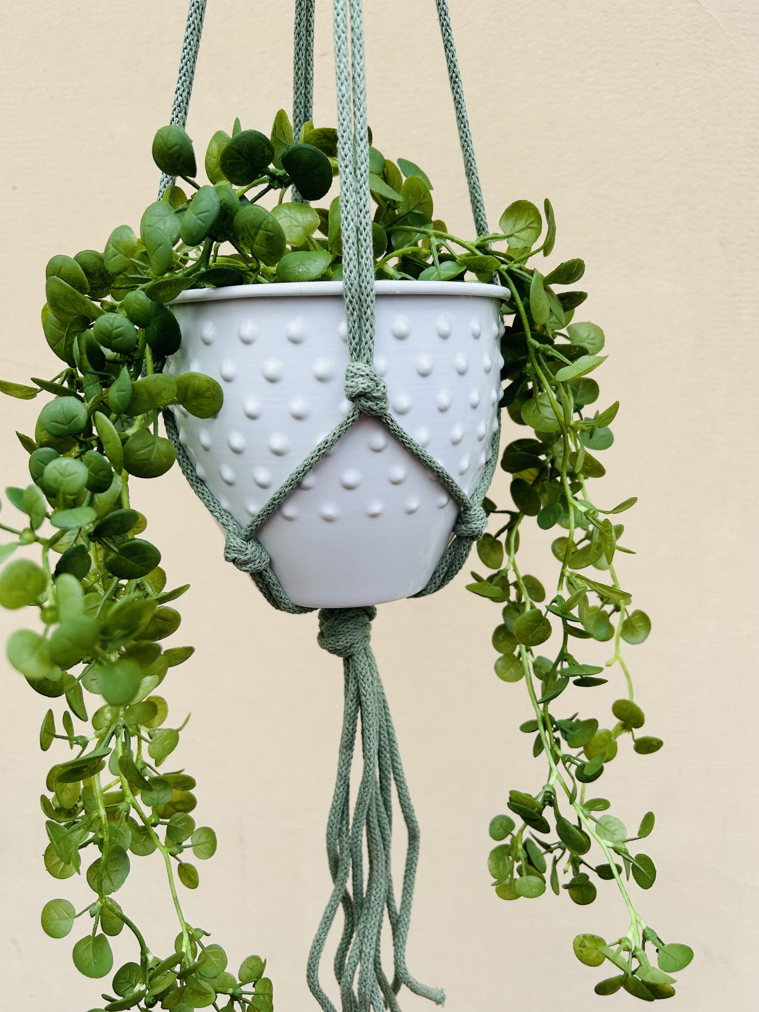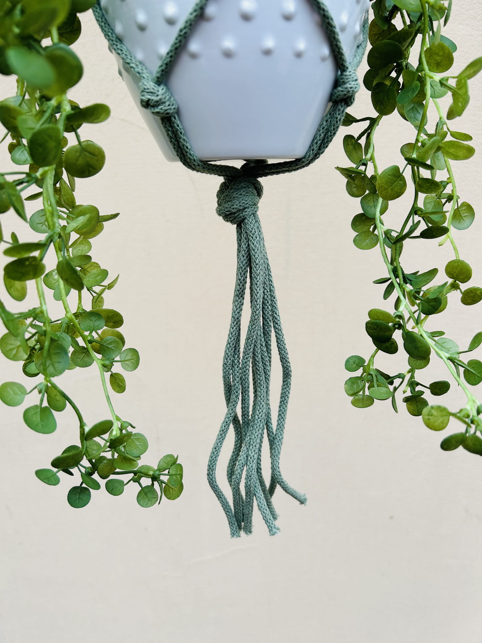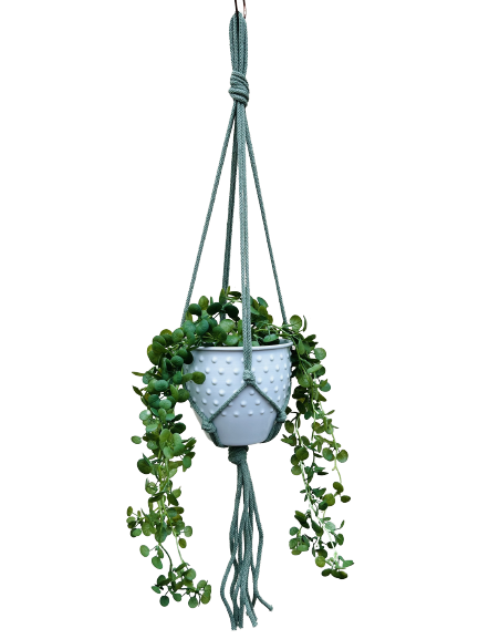 Kwietnik wiszący makrama ze sznurka boho PISTACJA