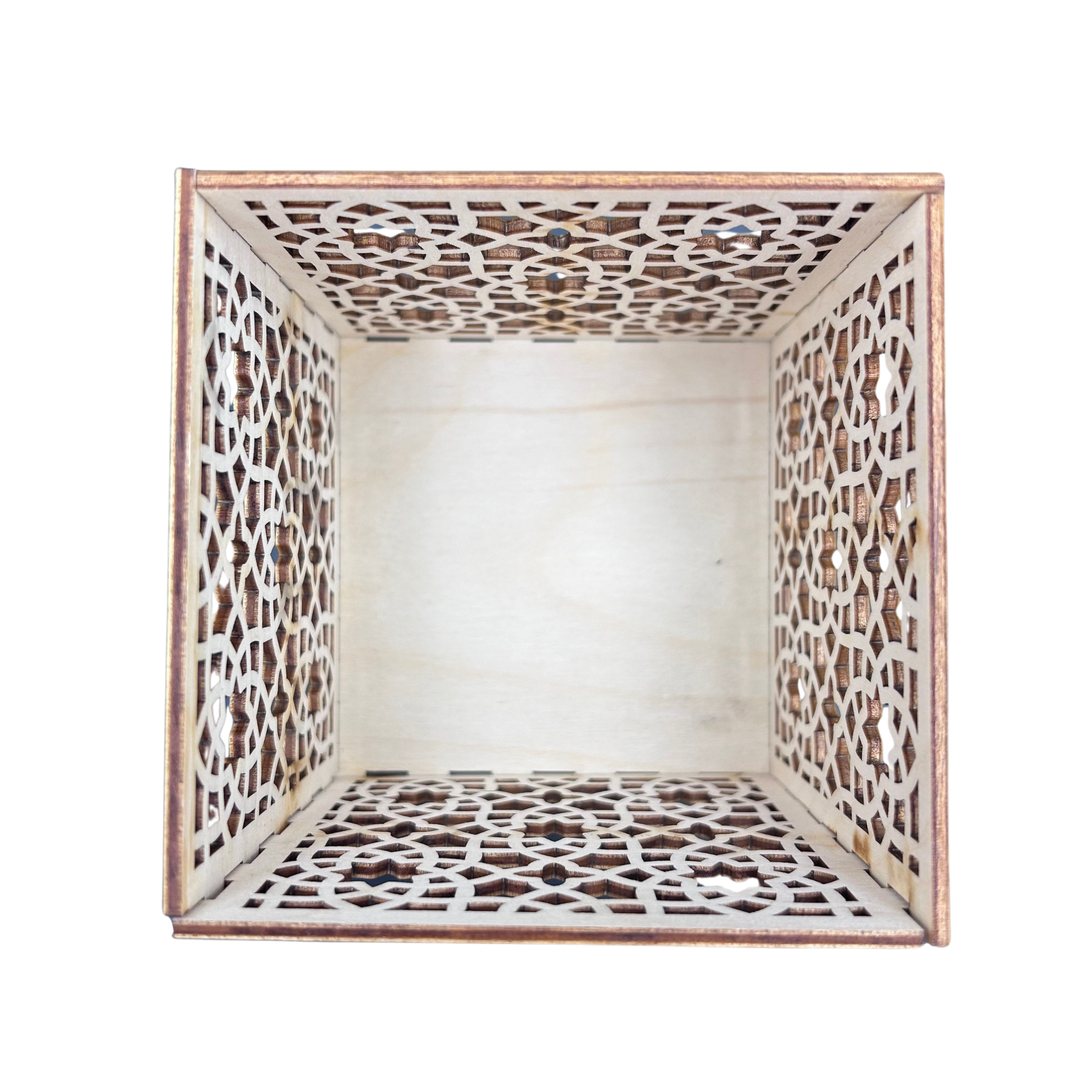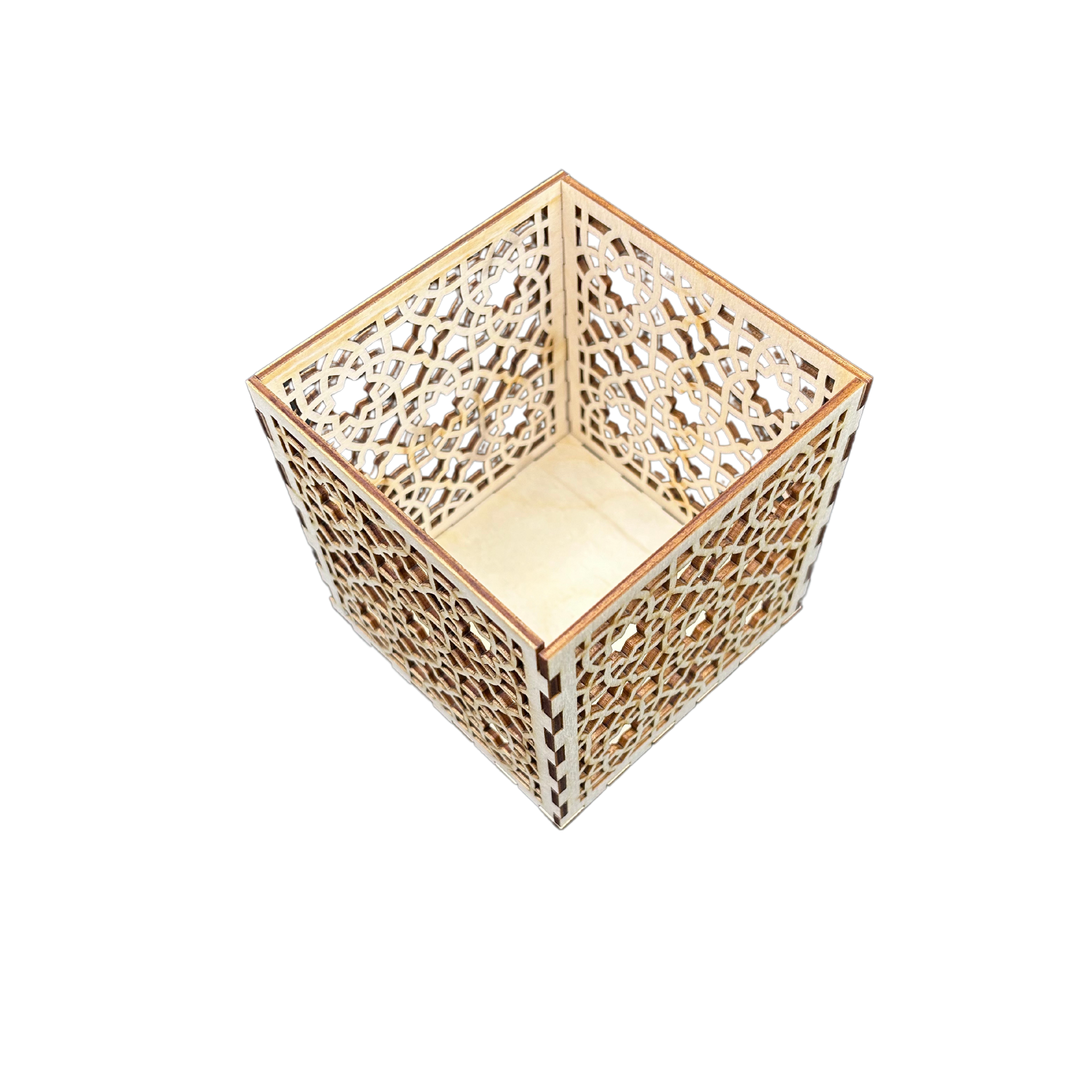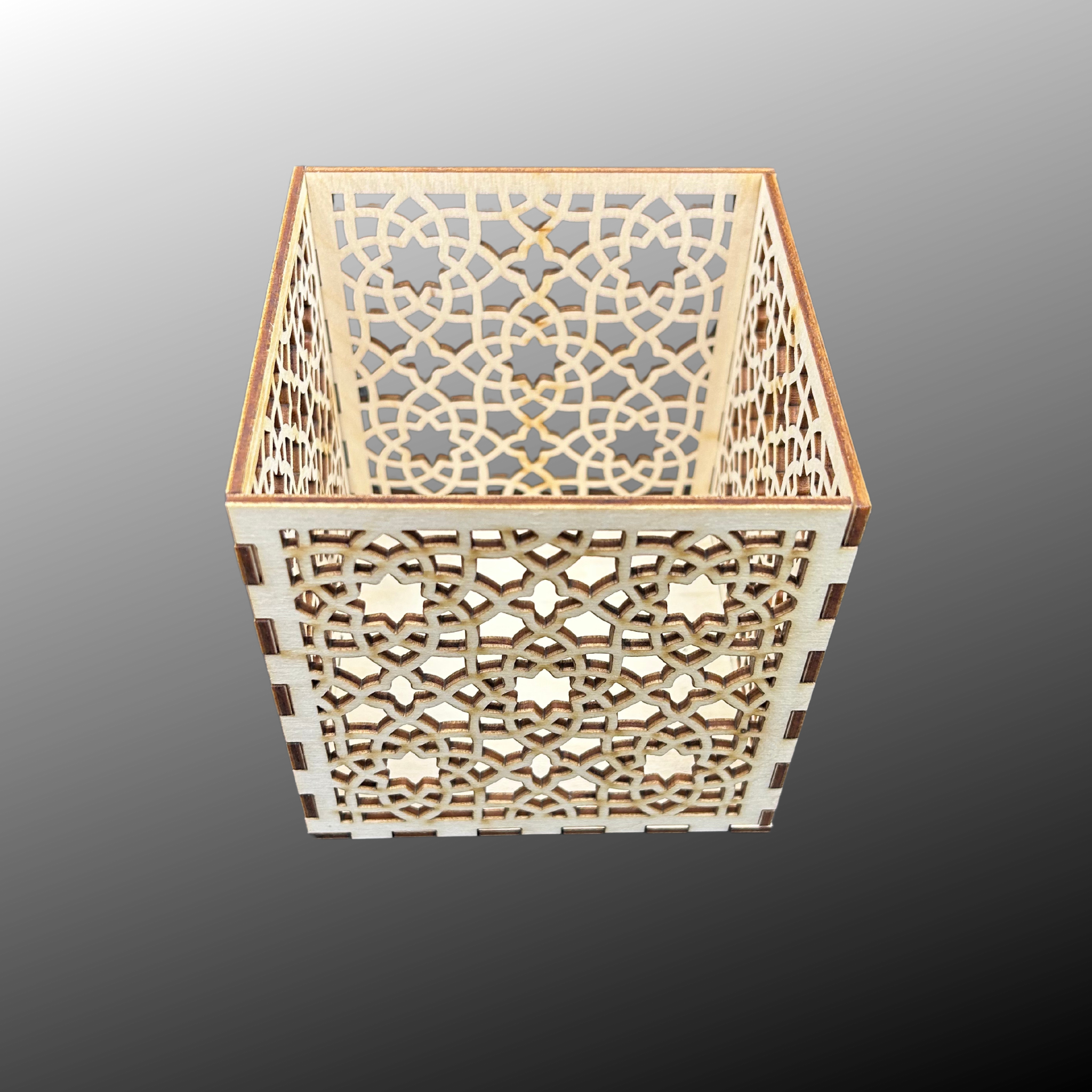 Lampion drewniany latarenka ze sklejki decoupage pudełko świecznik 11cm