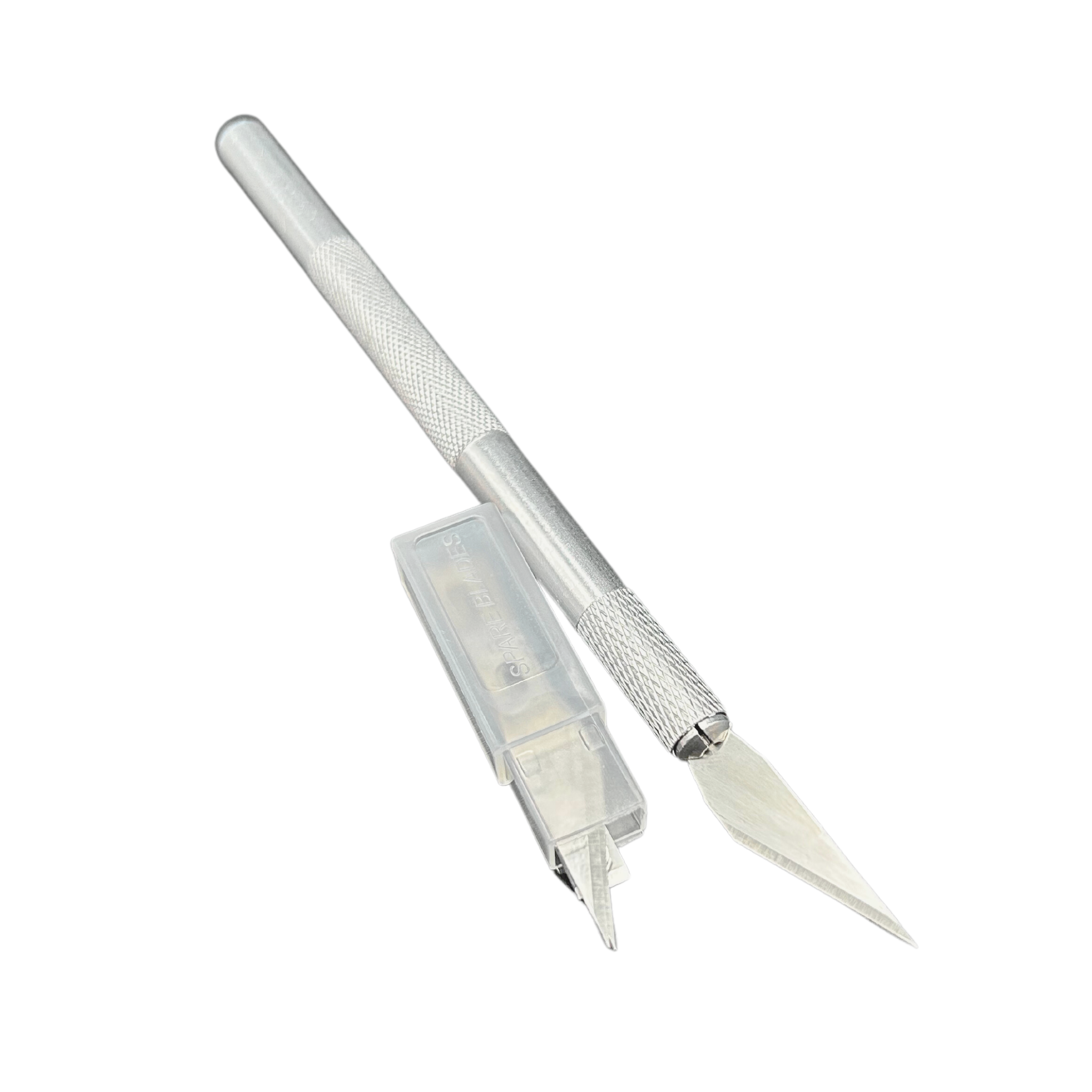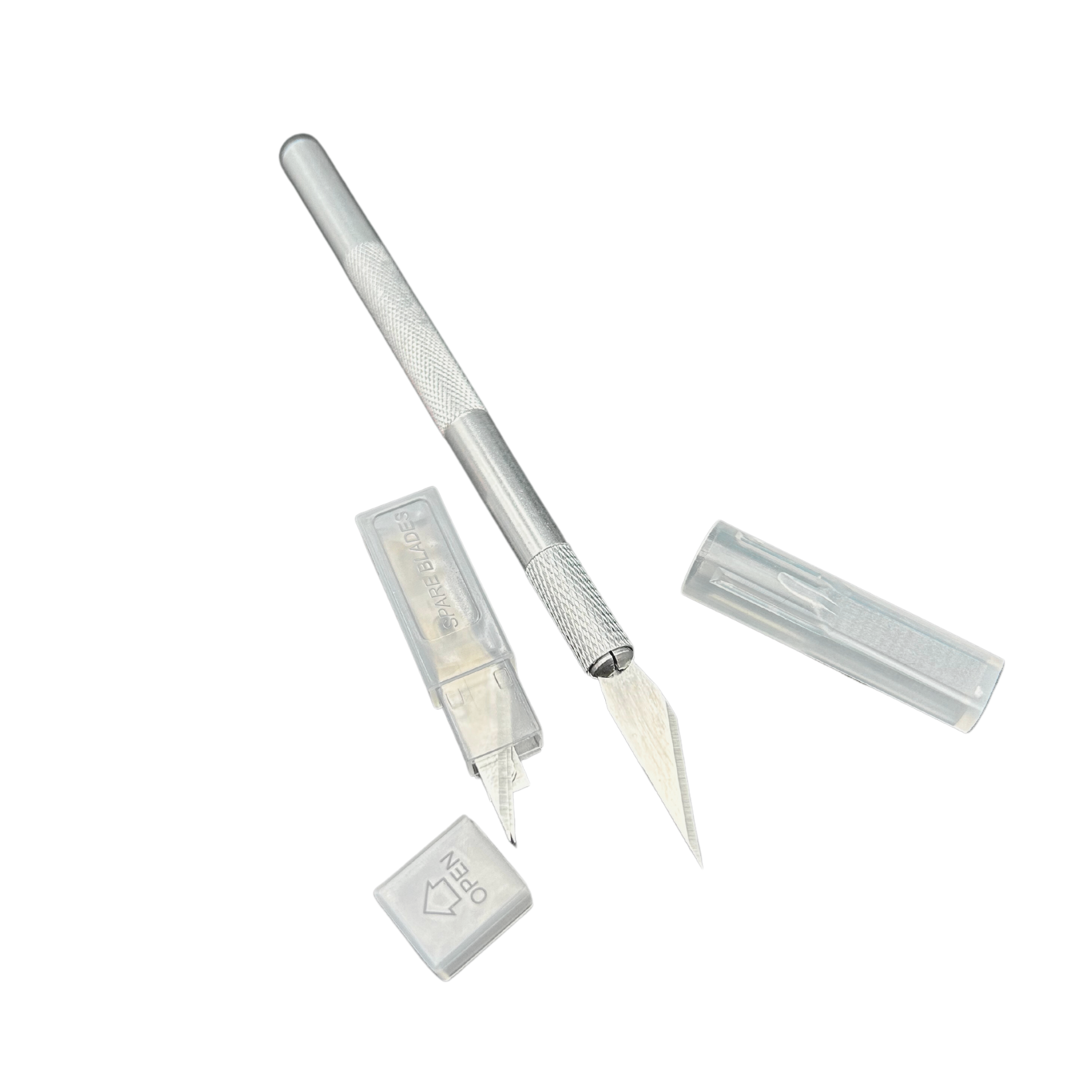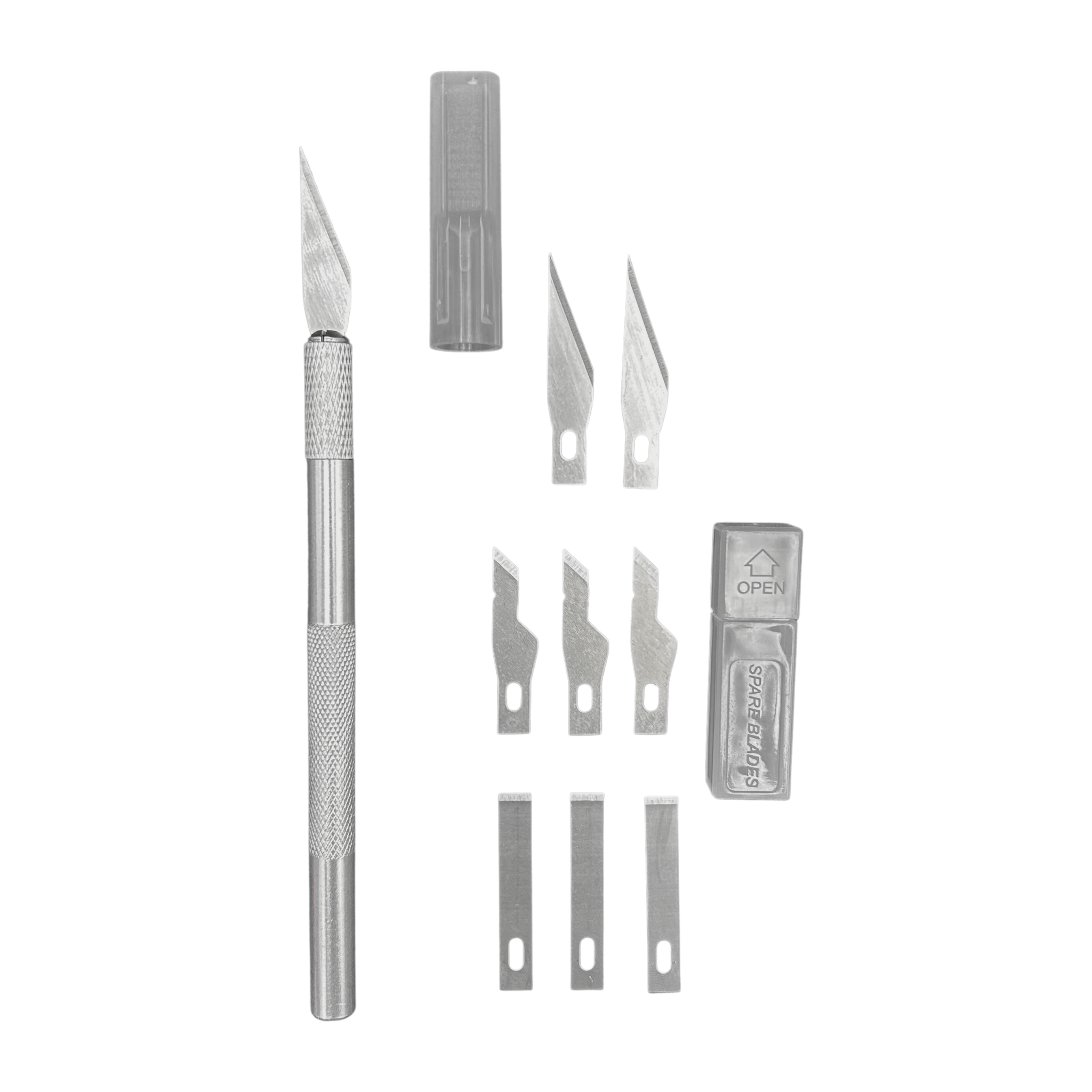 Nóż modelarski przeznaczony jest do niezwykle precyzyjnego cięcia papieru, kartonu lub innych materiałów. Posiada niezwykle prostą budowę oraz antypoślizgową rączkę, która zapewni ci że twoja dłoń się z niego nie ześlizgnie. Wąska końcówka ostrza pozwoli ci na szybkie dotarcie do nawet najbardziej niedostępnych miejsc a ostrze wykonane ze stali nierdzewnej da ci pewność na szybkie oraz mega precyzyjne cięcie.